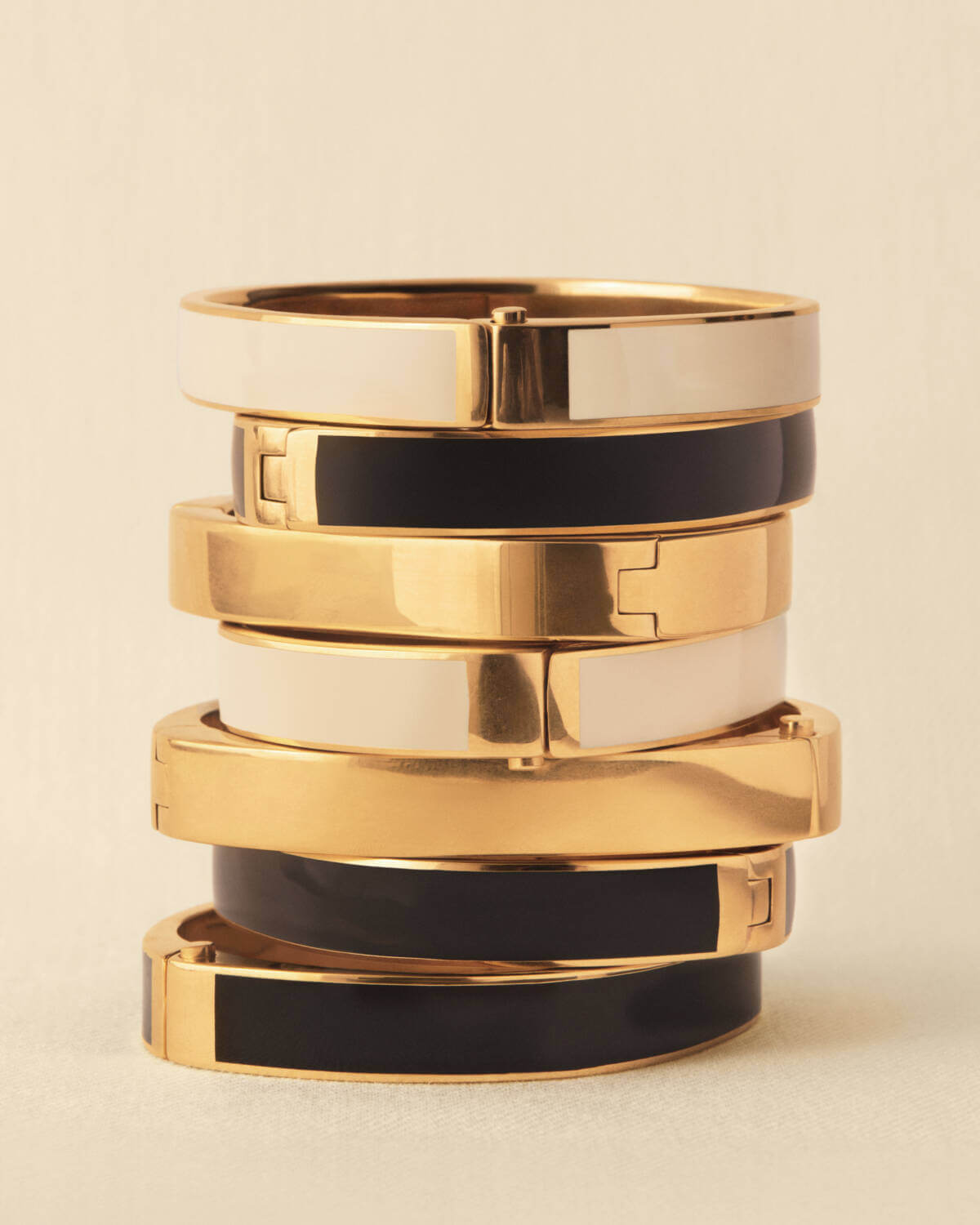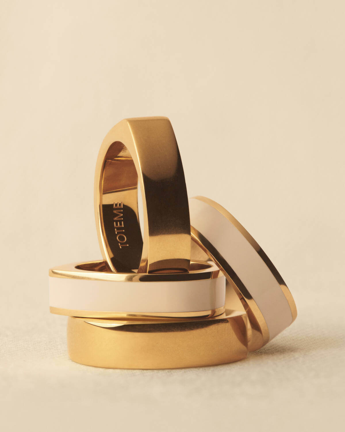 Fans of Scandinavian minimalism are going to be thrilled to note that everyone’s favorite cool girl brand Tôteme is now offering jewelry. Inspired by bold architectural forms and intended to be the foundation of your jewelry collection, the line will include both fine and brass options. Over in the fine category, you’ll find diamond-set midi rings as well as a chain necklace, both made in 18 carat recycled gold and conflict-free stones. For those looking for something at a lower price point, the signature pieces consist of a bangle, hoop earrings, and a collar necklace all made with 18 carat gold-plated brass, with some pieces inset with neutral toned enamel. To showcase the pieces the brand tapped Steven Meisel to shoot model Vivienne Rohner. You can shop the entire collection starting tomorrow, November 18.