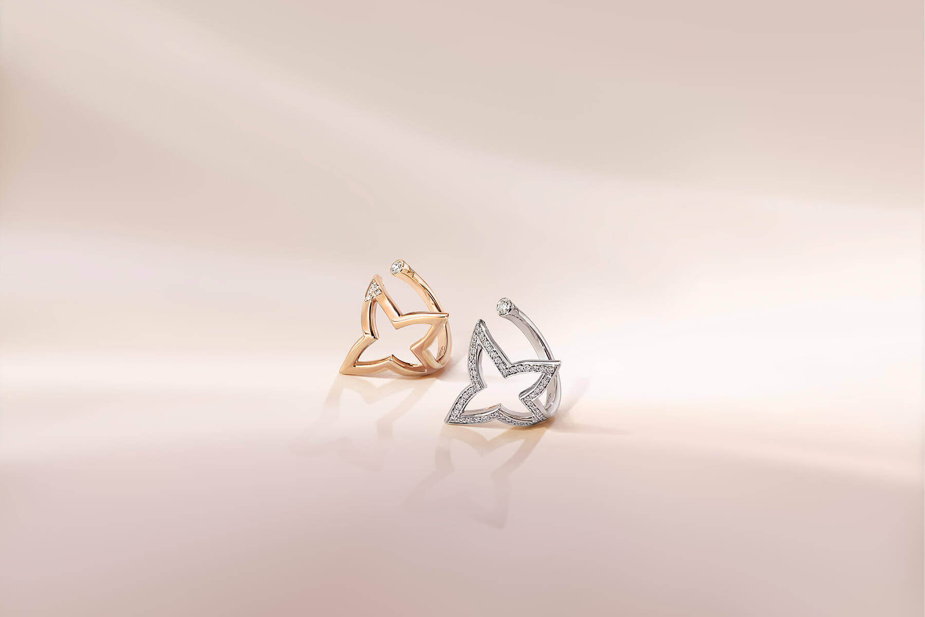 Few logos are more recognizable in fashion than Louis Vuitton’s signature monogram. Consisting of the letters L and V as well as a repeating floral motif, the brand has seen this design reinterpreted in a multitude of ways, including serving as a creative launching point for jewelry. In 2012 the blossom inspired the launch of Idylle Blossom while in 2016, the Color Blossom collection debuted. Now, Louis Vuitton is adding to the family with the new Blossom Fine Jewelry collection. Francesca Amfitheatrof, the brand’s Artistic Director of Watches and Jewelry, dreamed up an abstract vision as seen in a series of rings, earrings, bracelets and pendants.