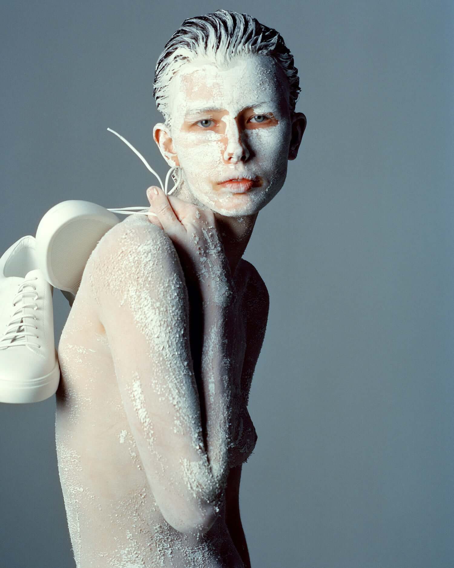 “I was heavily inspired by the Roman Architect Francesco Borromini, one of the major architects who shaped the baroque silhouette of Rome as we know it today. I got into his work and ideas after a trip in Rome a while ago. It was very intriguing to me to dive into his world; his way of thinking and his approach to architecture in general. He was trying to find his own way to adapt his knowledge by creating new shapes and solutions – knowing about perspective and the effects of proportions and distances. By combining ovals and circles in an unusual way, he designed new solutions for domes and as a result to that, a new skyline at the time. These shapes are evident in my approach, especially in the shoes and their sole-construction.