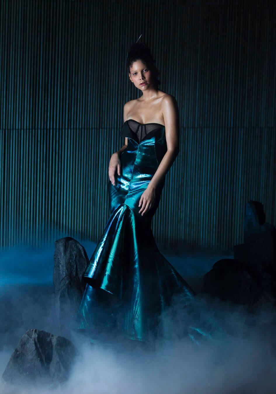 “It was always my dream to go to Paris and study haute couture, then to come back and be an American designer,” Mai says. He moved to New York and launched his own collection in 2019, fuelled partly by a partnership with the French textile firm Hurel that grants access to fabrics like moiré libre, mirrored velvet lamé, and velvet jacquard, typically out of reach for young, independent designers. Mai’s silhouettes bear the influence of Galliano’s bias cuts, Balenciaga’s sculptural volume, and de la Renta’s flirtatious sophistication, filtered through a modern, digital-era, millennial lens.