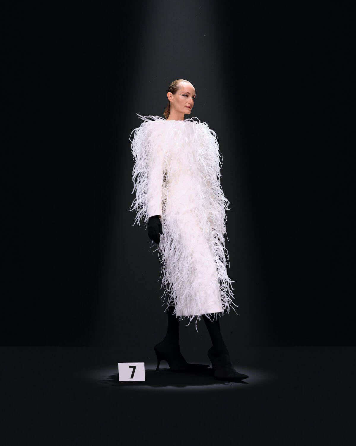 By now, it’s written into the social media history books: Eliza Douglas closed the Balenciaga show in a Jeanne d’Arc ballgown of armour made from 3D-printed resin and galvanised metal. “I suffered all my life because of the way I dress and what I try to show through my work,” Demna said, referring to the French martyr, “and it just had this symbolic relevance to dressmaking and this metier being my armour: the place where I reconnect with myself and where I’m happy.” Scored by the acapella voice of Maria Callas, his third annual haute couture show opened with Danielle Slavik – who modelled for Cristóbal Balenciaga between 1964-68 – in a replica of her favourite dress from the Winter 1966 collection. It was followed by funnel-neck dress constructions created by rotating the hemlines of the founder’s dresses, and mind-blowing gowns structured like jewellery-making. Demna proposed a series trompe l’oeil creations made of oil paintings on canvas, posing as fur, leather or denim, as well as coats and scarves moulded to look like they’d been windswept. Isabelle Huppert joined a cast including Amber Valletta, Guinevere van Seenus, Demna’s husband Loïk Gomex, and his close friend Yuri. “Couture, to me, is the only way to shed light on the essence of this job: making real clothes, authentic creativity, the importance of the person who wears it, and not the endless marketing and selling, and all this blah-blah that has cannibalised the whole industry. My job is to show that,” he said after the show. “It’s like anti-virus. Couture, to me, is like Moderna. It cannot save it but it can at least highlight the importance of keeping its immunity. For me, without that, there is no hope.”