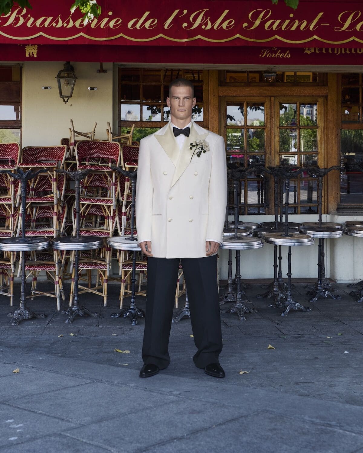 It feels apt, though, that the boundary-shattering designer – whose collections have continuously challenged the notions of luxury with a wink and a nudge, celebrating style born on the street with blazing, uncompromising glory – chose to close his chapter at the house in a quieter setting, inside the confines of the maison’s couture salon at 10-12 Avenue George V. It was Demna, after all, who resurrected the house’s couture studios in 2021; the first designer to pick up the mantle from Cristóbal Balenciaga himself, who shuttered his couture salon in 1968. He stripped back the salon’s exterior, dirtying its white walls and laying down a greyed carpet as if the space had been untouched since Cristóbal’s departure, like Demna was picking up where the couturier had left off.