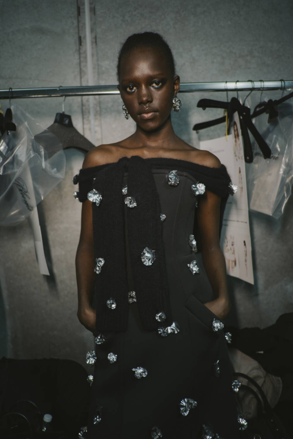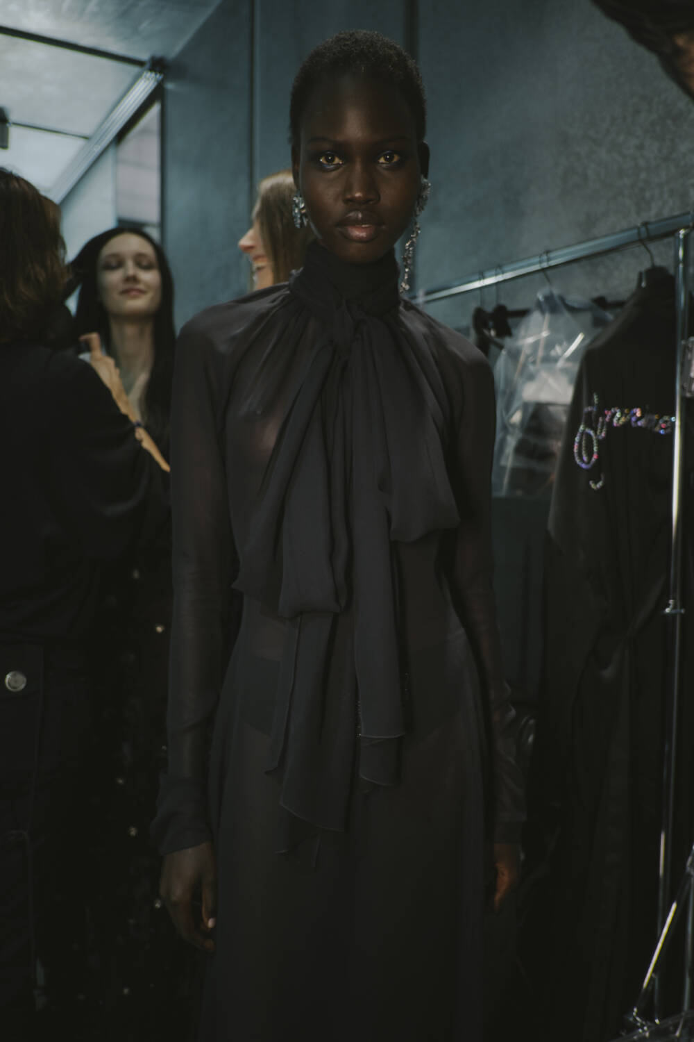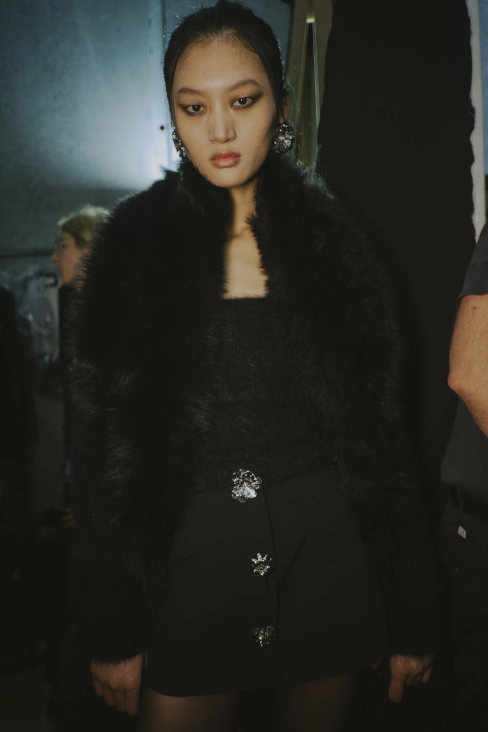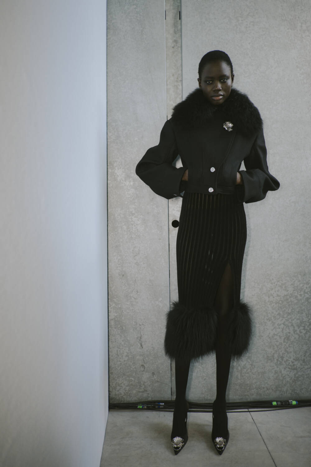 David Koma’s Blumarine debut was nothing short of mesmerising. With a collection that exuded cinematic allure, Koma brought Nicola Brognano’s signature sweet sexiness back to life but reinterpreted it through his own sharp, elevated lens. That meant silhouettes were sturdier, with leather intricately woven into biker-inspired designs and tailored twinsets that felt both sophisticated and seductive. The weight of the collection came in the form of colossal faux fur coats, which enveloped skimpy bodycon dresses, creating a contrast that was both dramatic and indulgent.