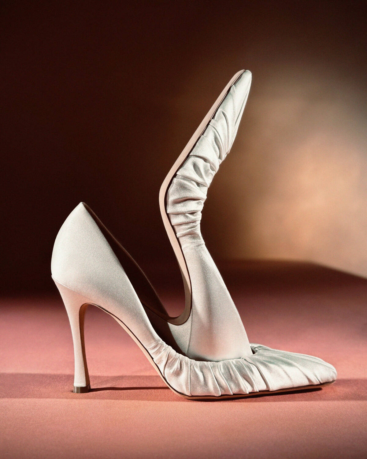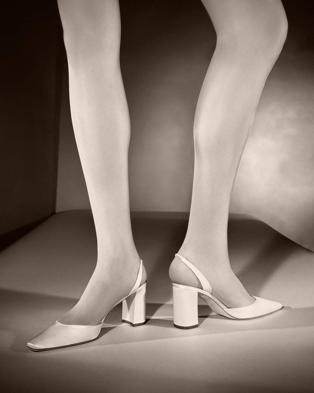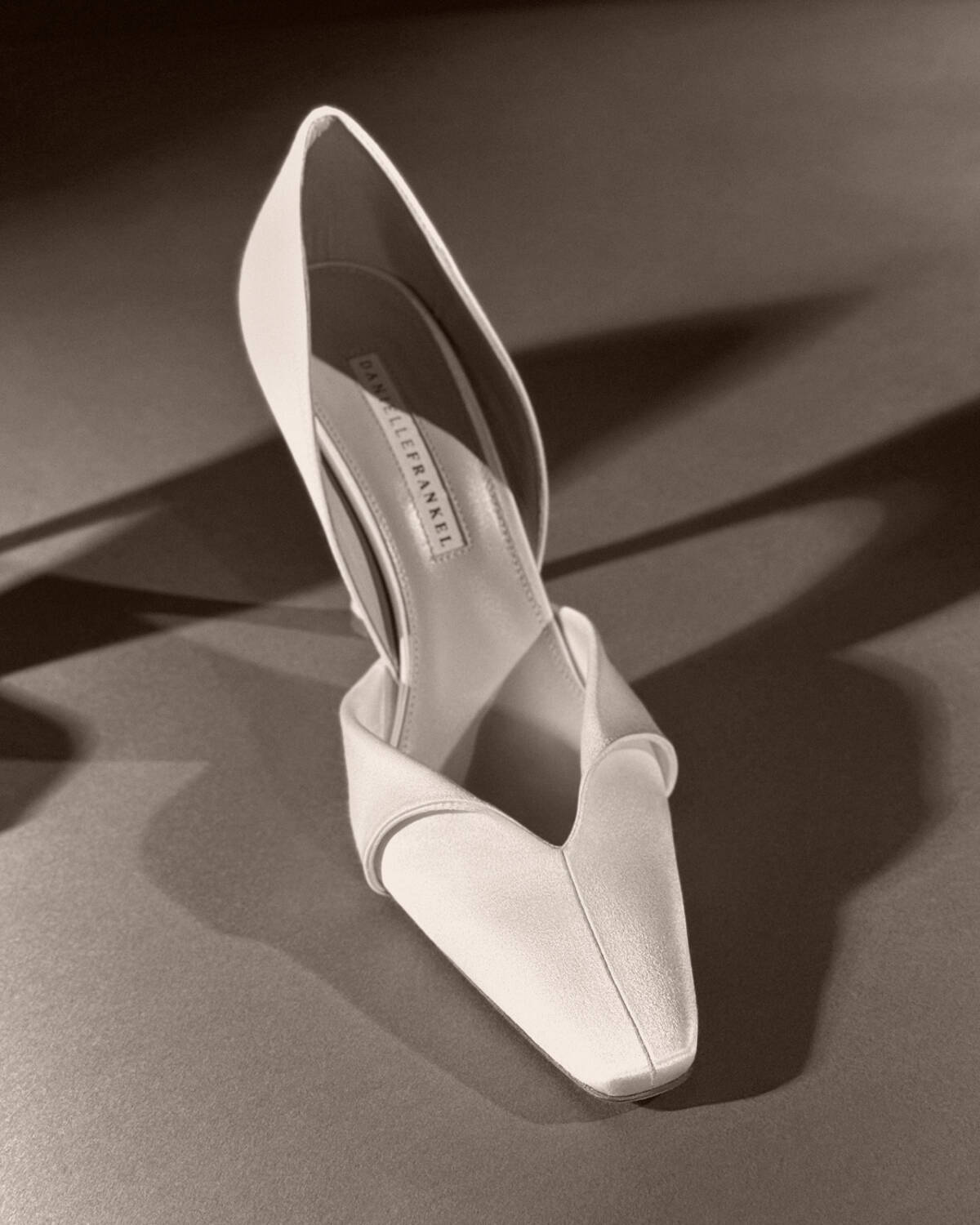 Brides who don’t want to look bridal love Danielle Frankel. And now the brand is taking their signature elegance down to your shoes with the debut of their new footwear line. Crafted in Italy, the collection features ten styles that reimagine classic favorites like the ballerina flat and slingback heel, albeit with a modern twist. Expect clean lines, elongated shapes, hand-painted mesh, and romantically draped satin details. The ‘Kennedy’ pump, with its satin wrap-around detail, is a standout piece, while the floral ‘Beatrice’ flat adds a sweet touch. Shot by Dutch photographer Paul Kooiker, the campaign captures the footwear in a playful and nostalgic light. Pre-orders are available now.