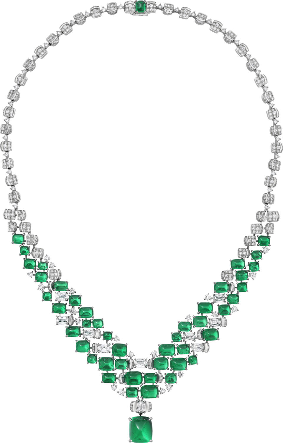 Last, but certainly not least, is the Sibaya necklace, offering a more abstract take on the natural world, with its design inspired by the scales of a crocodile. The sugar loaf emeralds, chosen for their color and shape, are set against sparkling diamonds that evoke the shimmer of the sea and the movement of a reptile swimming through water. This piece is yet another piece that exemplifies Cartier’s ability to push the boundaries of design, creating jewelry that is as imaginative as it is visually pleasing.