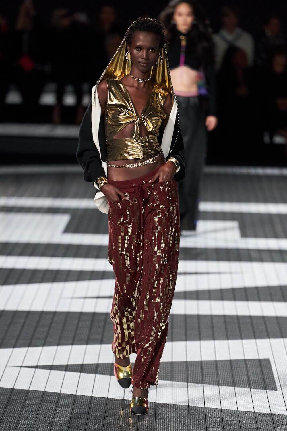 Once upon a time in Hollywood, aerobics studios and roller-skating ruled whilst John Travolta and Jamie Lee Curtis set pulses racing with their pelvic thrusts in the body beautiful movie Perfect. For her blockbuster cruise show held on the Paramout Studio lot, Chanel’s Virginie Viard, bypassed golden age Hollywood glamour (when Coco dressed the likes of Marlene Dietrich and Claudette Colbert, and created costumes for George Cukor and Jean Renoir). Instead, Viard homed in on LA’s ‘let’s get physical,’ era, embodied by workout queens Jane Fonda and Cindy Crawford and the 1980s parade of beautiful bodies, rolling or strolling down the Venice Beach boardwalk. “From John Travolta to Jane Fonda, so many actresses, the body, the gym, aerobics,” Viard said of her inspiration for her cruise collection. “Un peu sport, un peu tweed.”
