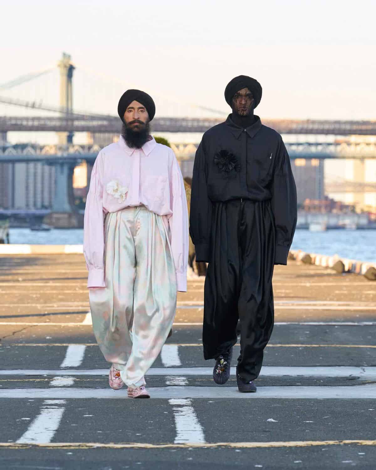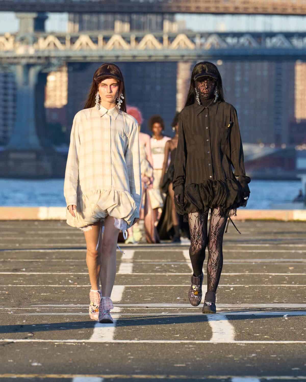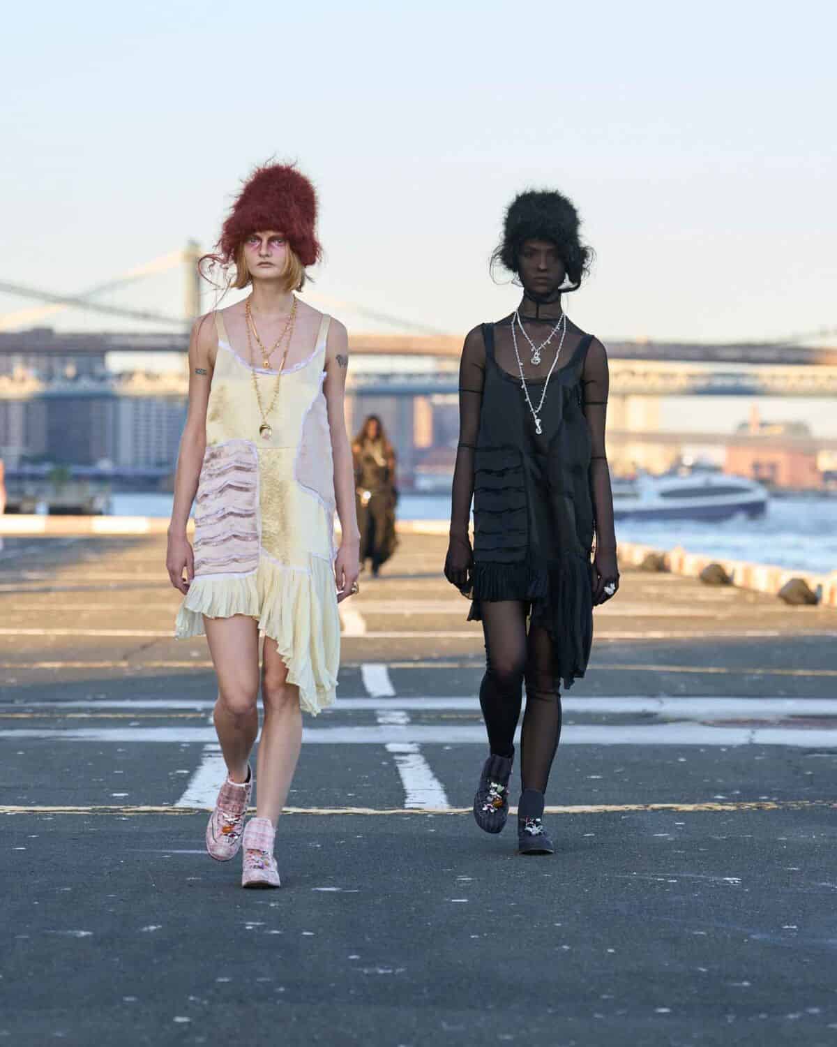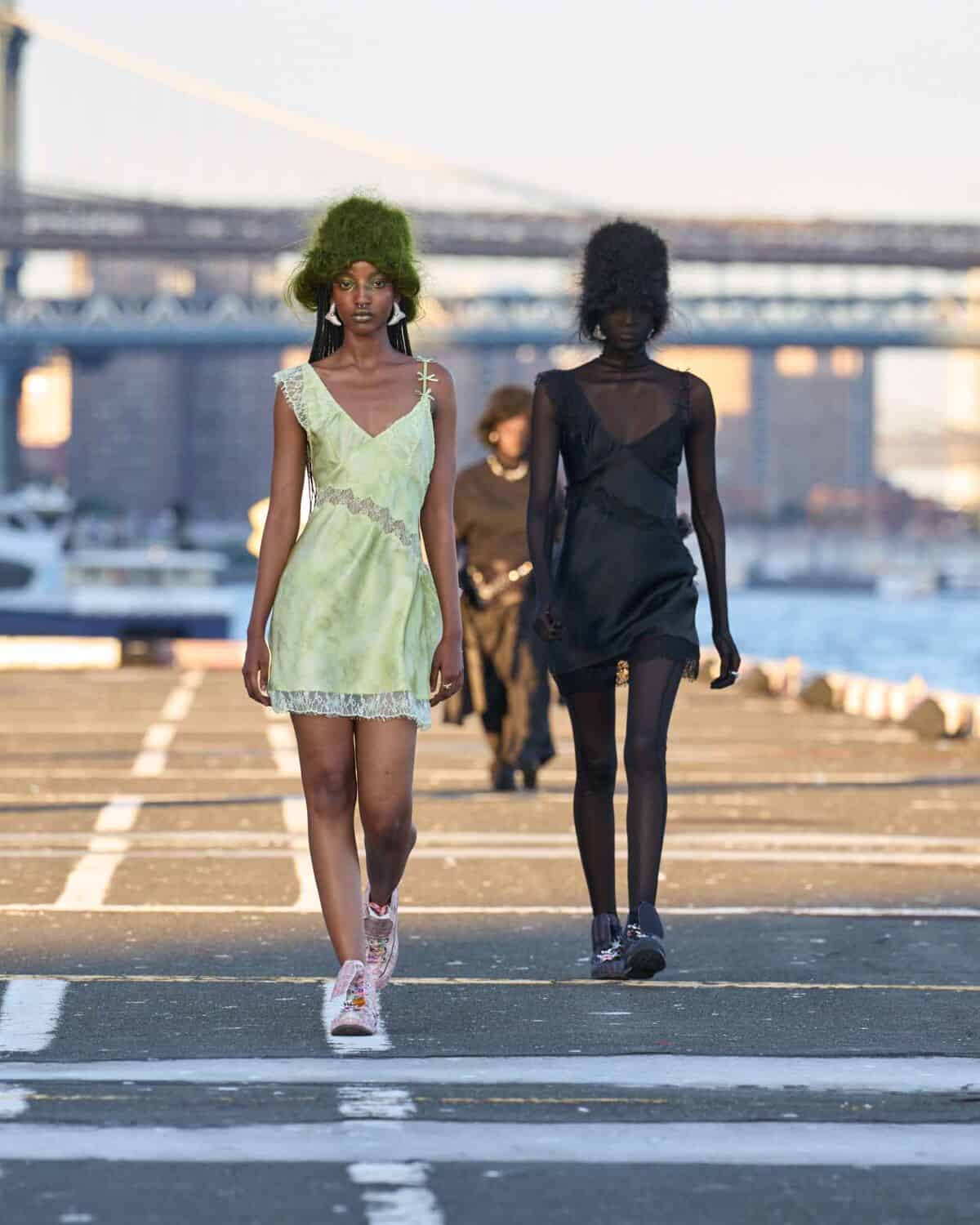 See it, like it? Well, let’s run it back– but this time in black. Under an end-of-summer sun that seemed to flood the East River Pier’s concrete helipad with golden light, seeing double was the motto for Collina Strada’s spring 2026 collection. This was a show about duality and tethers, playing up the duet between the shadow and light of Plath’s Persephones; for every Mario has its Wario, every white swan its black mirror image.