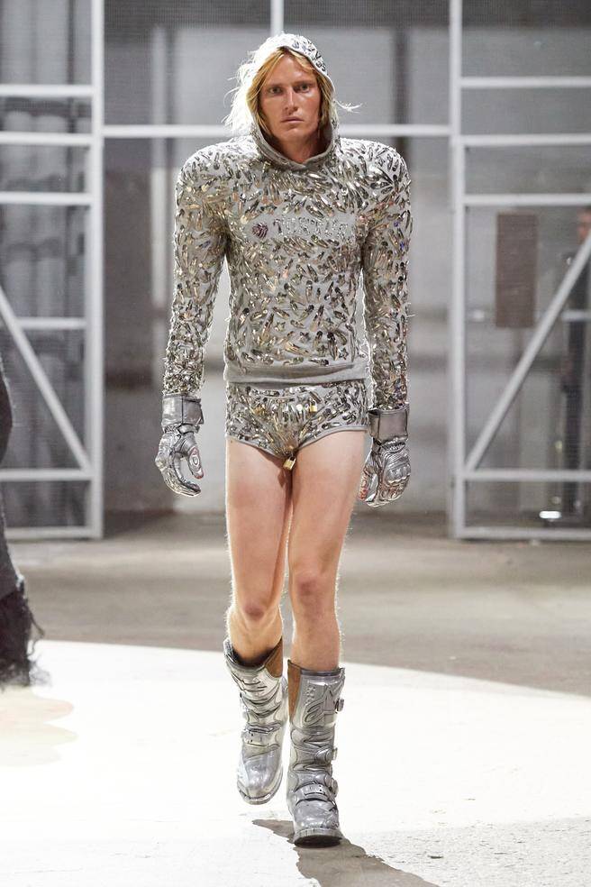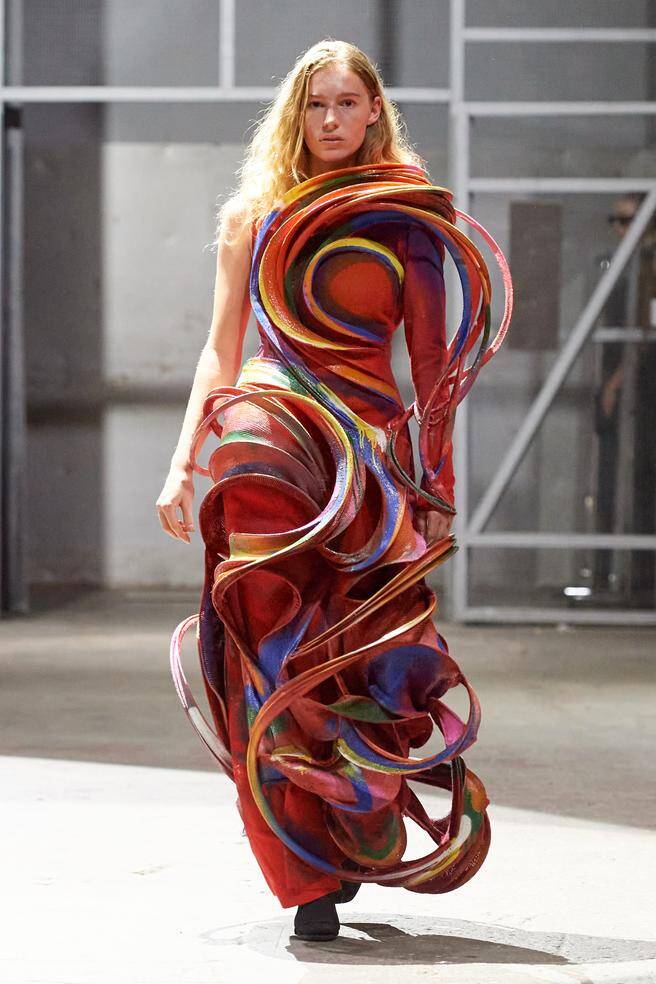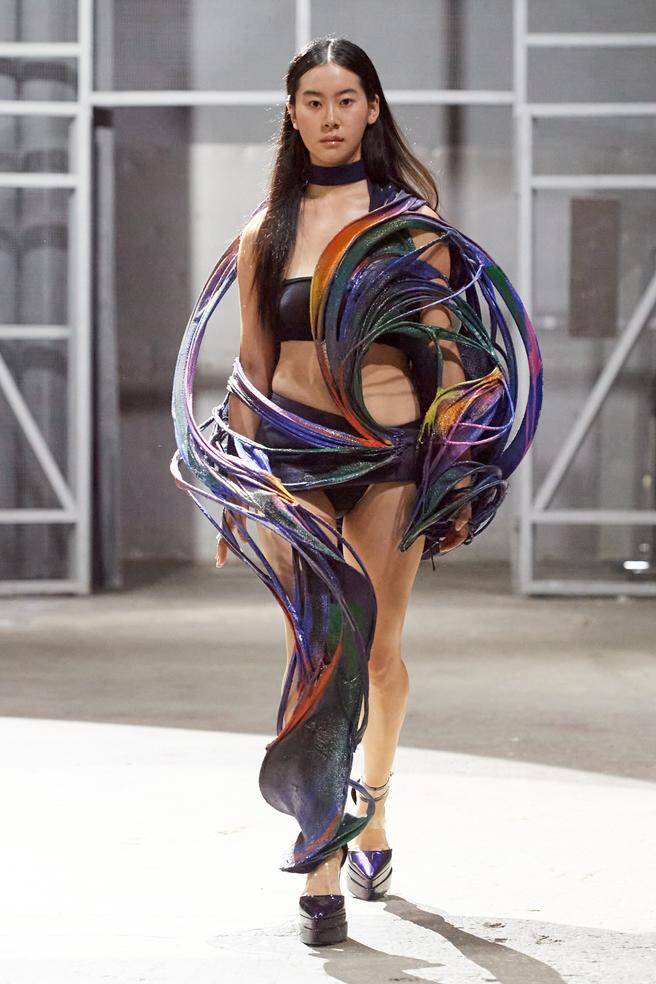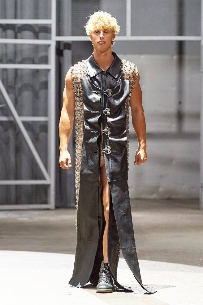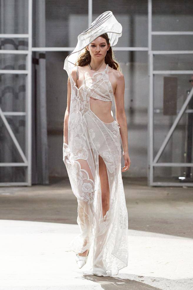 Other highlights to note? With sculpted silver metal bustiers and Mean Girls-esque boob cut-out tops at Forza Collective, there was no shortage of weirdly good silhouettes at Copenhagen fashion week this season. Rotate closed Copenhagen Fashion Week with a slew of party dresses and baby-sized bloomers, plus tops and dresses covered in cascades of Pandora jewelry reworked by the rising jewelry artist Grete Henriette who turns jewelry into dresses. In one case, she took 2,000 Pandora tennis bracelets and created a fringed dress. Henrik Vibskov, who might just be the king of Copenhagen weird for his bizarre fashion week set-ups (like a 20-foot-tall person with many hands in the past) staged a show that had multiple people dressed as mechanics controlling plastic hands that lifted mountains and valleys of white sheets for models to walk over.