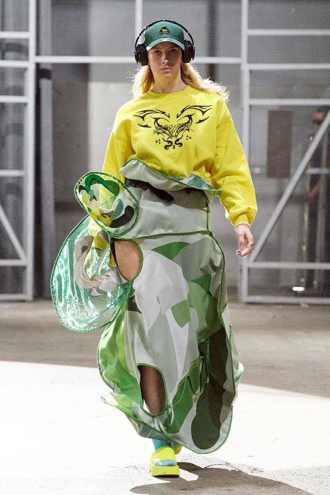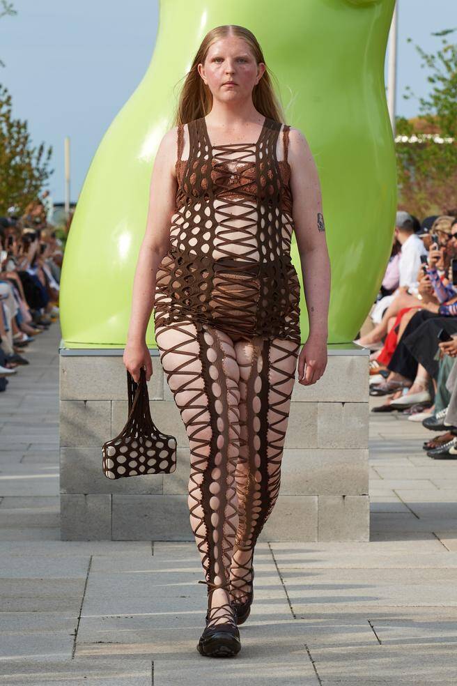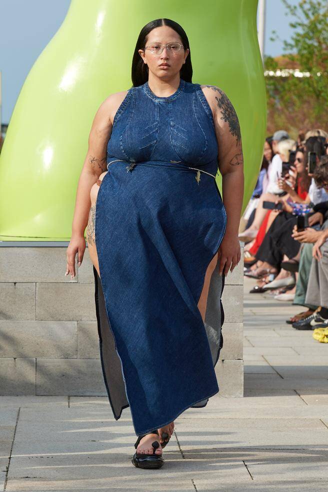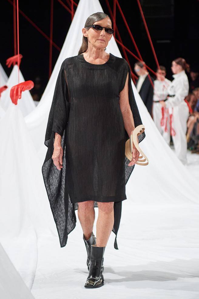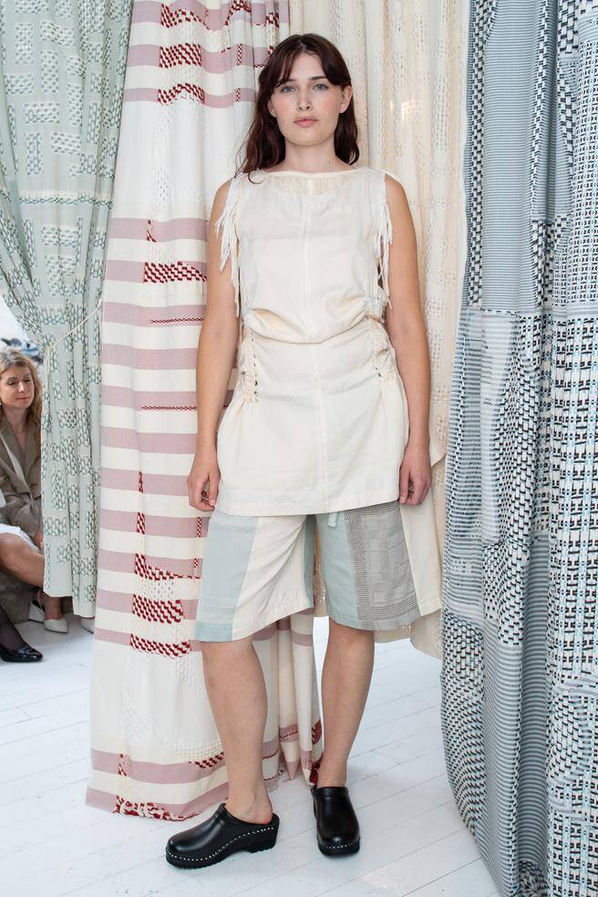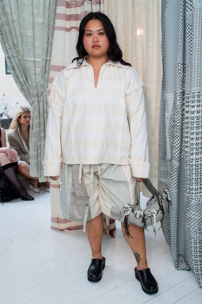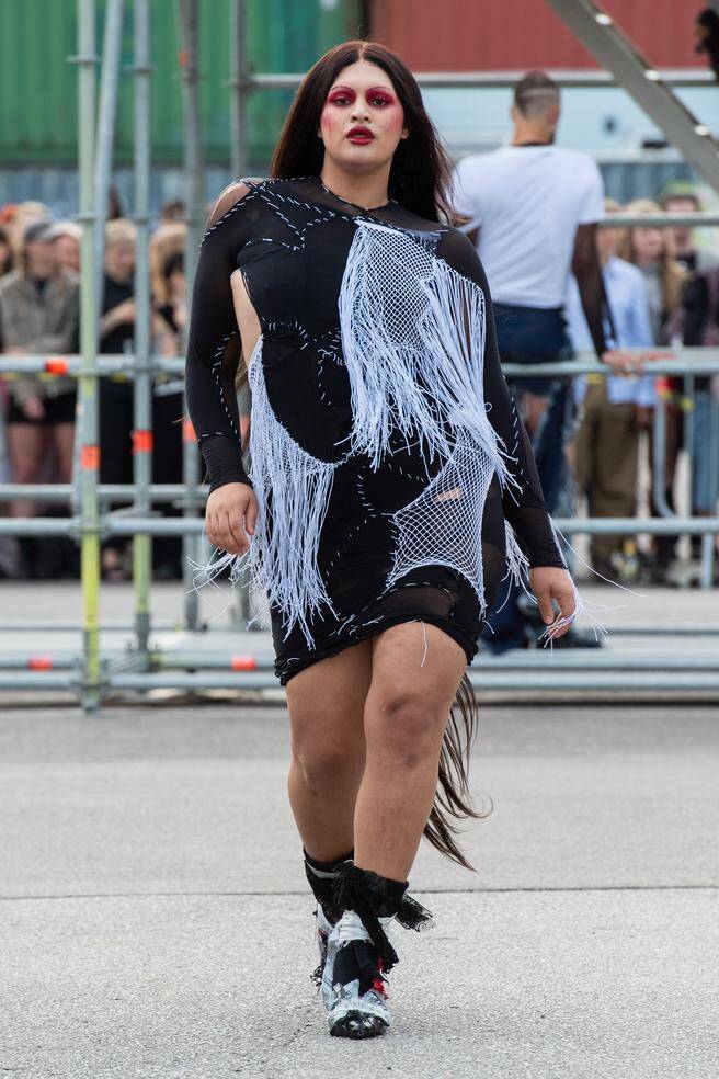 Rising designer Sinéad O’Dwyer, who usually presents in London, came to Copenhagen after winning the Zalando Visionary Award and infused the runway with an inspiring amount of diversity that other global fashion weeks should take inspiration from. Size inclusivity was a major theme for many of the emerging designers in Copenhagen this season–showing that if they can do it, the bigger brands should be more than able to do it too. Blind activist Lucy Edwards walked the runway as well as a slew of models wearing denim and bold cut-out dresses paired with chunky sneakers with gummy soles from the cult Japanese brand Grounds.