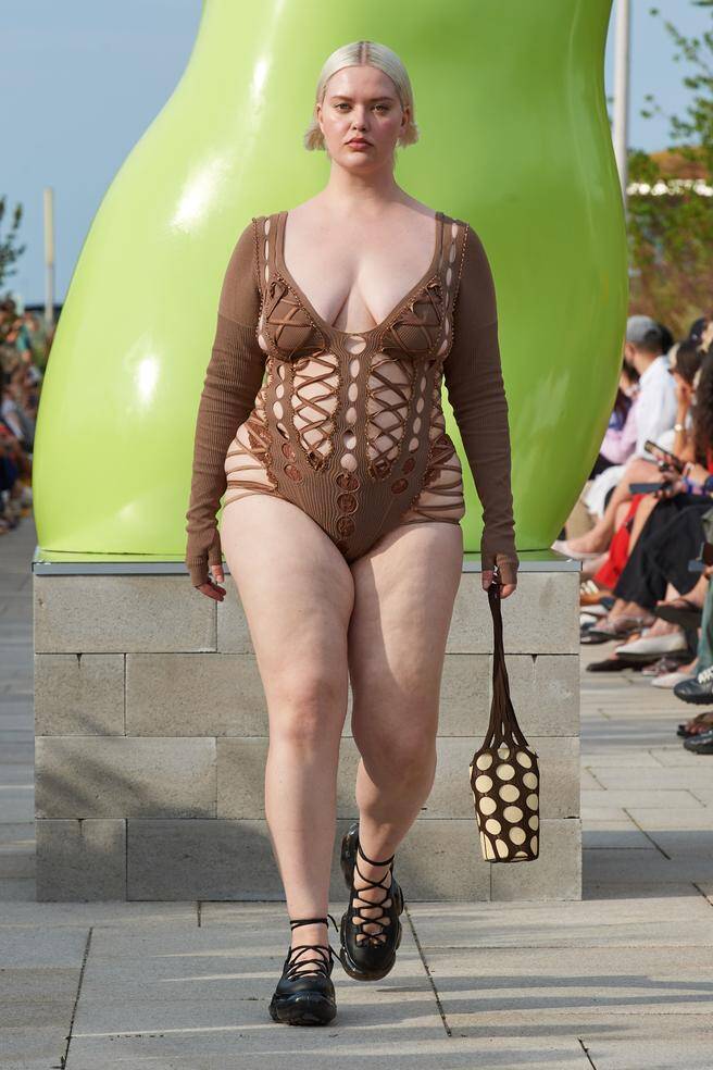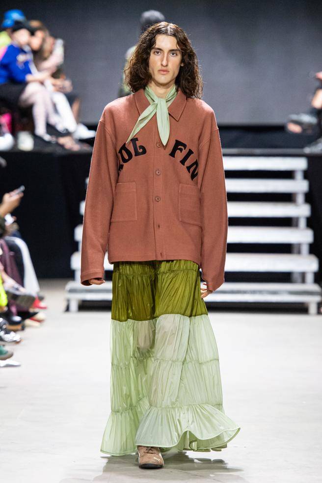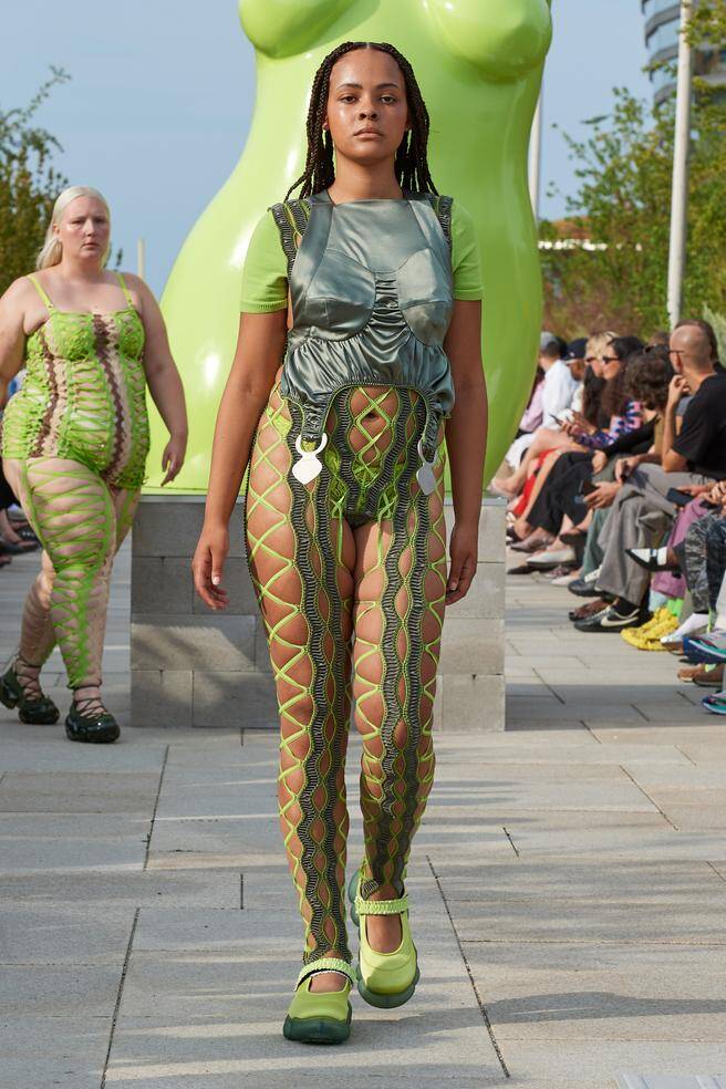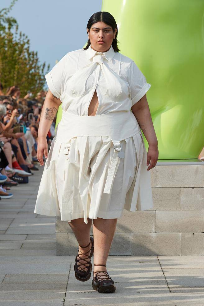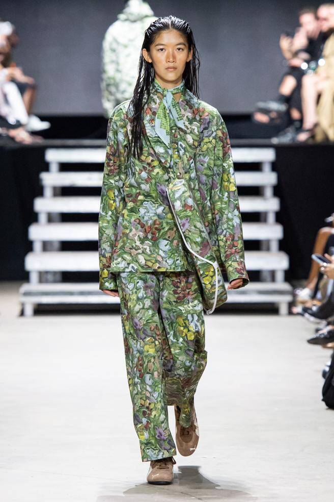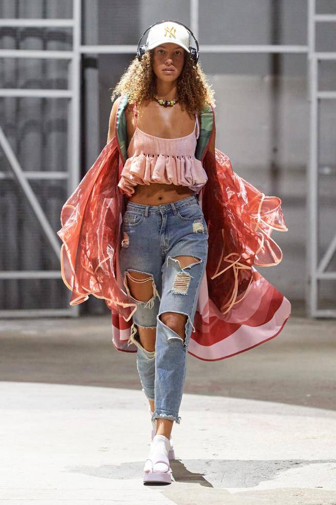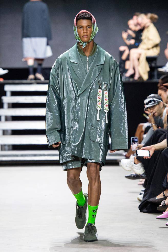 Rising designer Sinéad O’Dwyer, who usually presents in London, came to Copenhagen after winning the Zalando Visionary Award and infused the runway with an inspiring amount of diversity that other global fashion weeks should take inspiration from. Size inclusivity was a major theme for many of the emerging designers in Copenhagen this season–showing that if they can do it, the bigger brands should be more than able to do it too. Blind activist Lucy Edwards walked the runway as well as a slew of models wearing denim and bold cut-out dresses paired with chunky sneakers with gummy soles from the cult Japanese brand Grounds.
