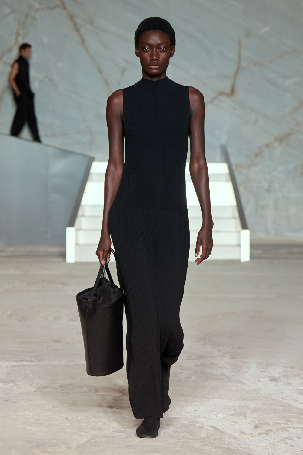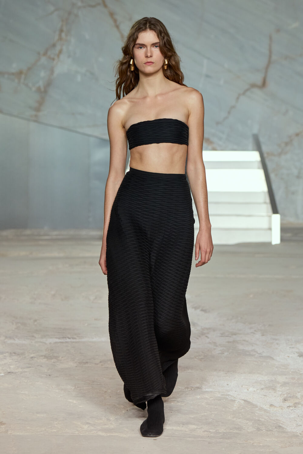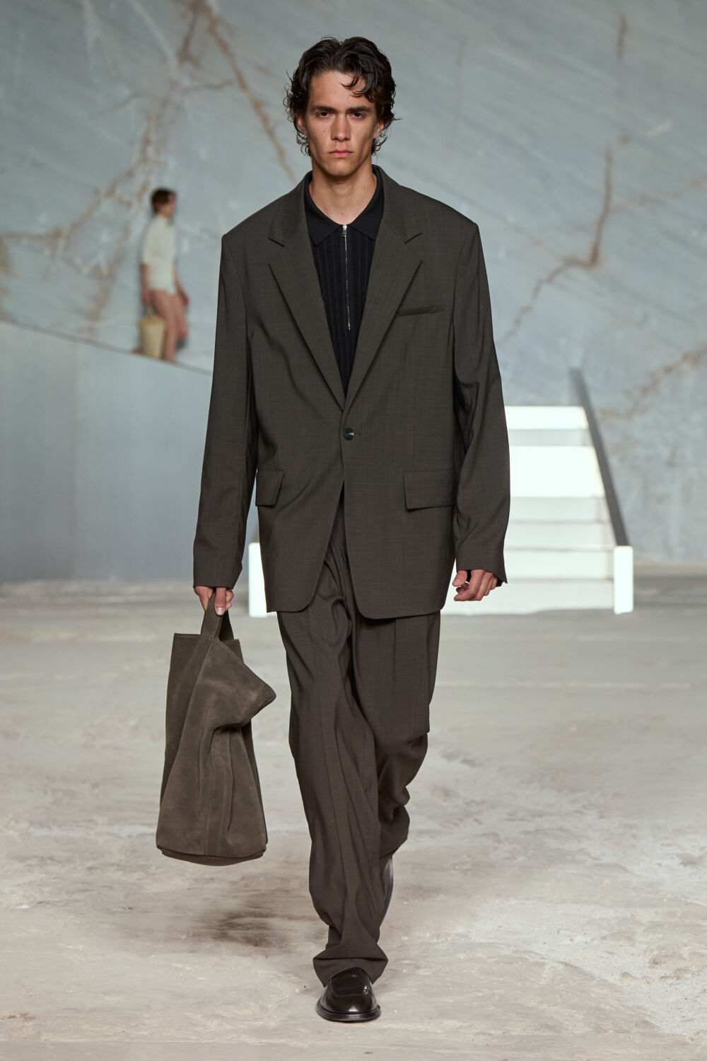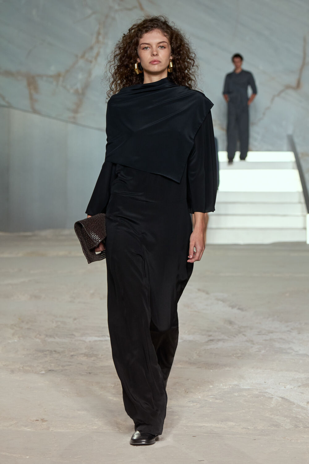 “The city provides a setting which contrasts history and contemporary design – the combination of structured, modern shapes with soft elements runs throughout the collection – pieces that feel both luxurious and effortless,” says the designer. “Our show location creates a serene yet dramatic backdrop, enhancing the understated luxury of this season’s pieces. Its captivating atmosphere serves as the ideal setting, amplifying the subtle elegance and effortless sophistication that defines our collection.”