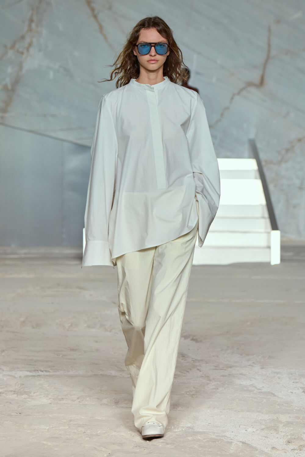 For its SS25 show, COS headed to Athens, where the towering Dionyssomarble Quarry on the edge of the city was transformed into a breathtaking catwalk setting. Creative director Karin Gustafsson, who is well-versed in bringing her minimalist vision to an international stage – previous COS outings have been staged in New York, Paris and Rome – says venturing to the Greek capital was a no-brainer.