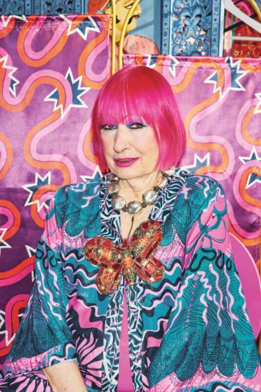 Dame Zandra Rhodes is a British institution. A figurehead in fashion now in her sixth decade of creations, the Kent-born designer, who is 83, has seemingly been on a one-woman mission to paint the town technicolour, but she starts with her own face.