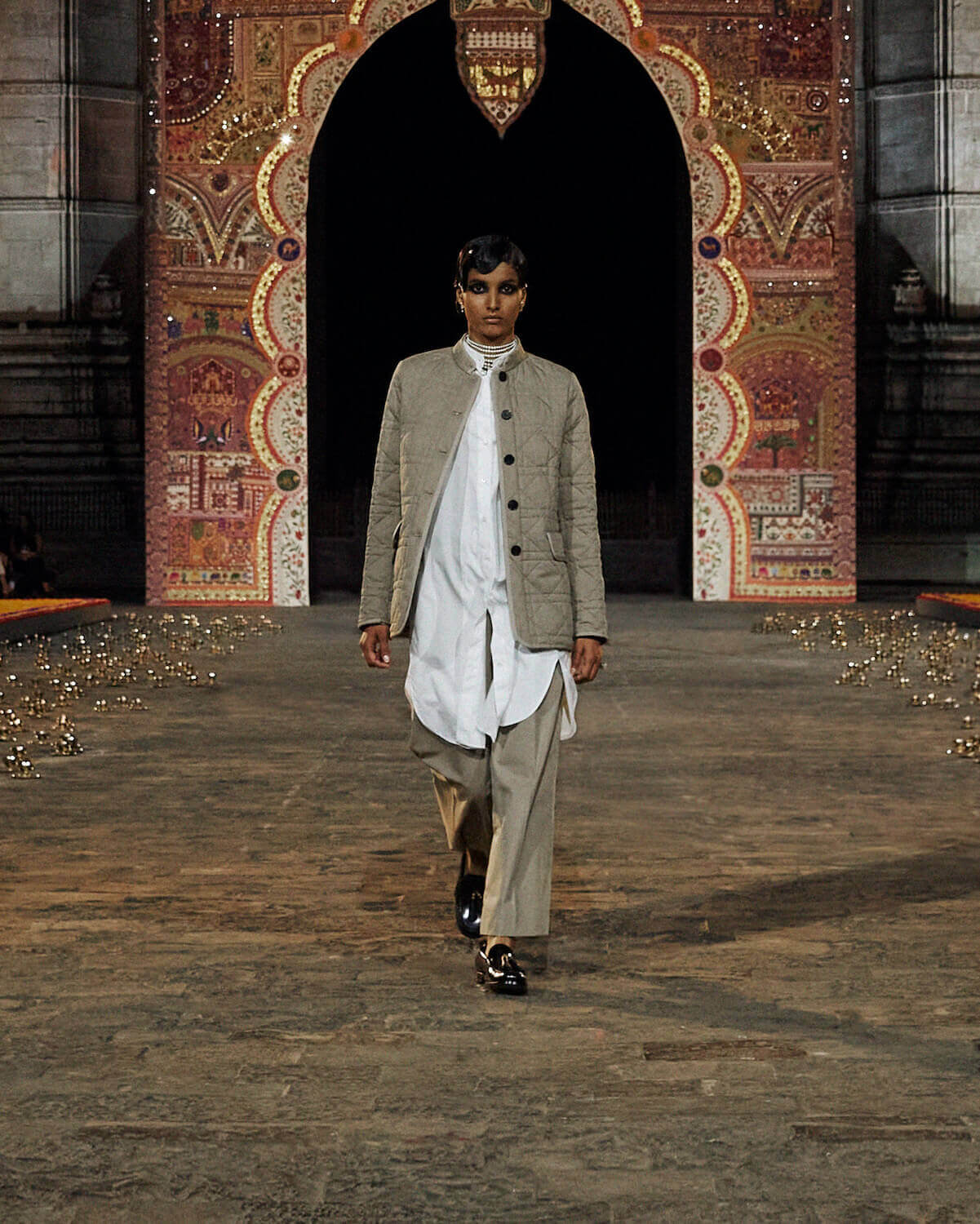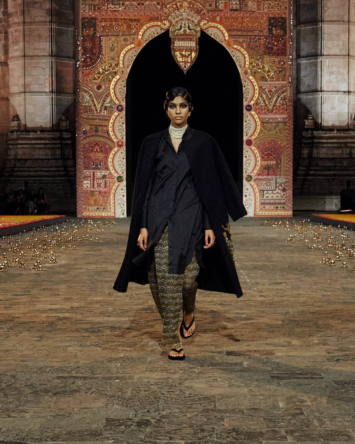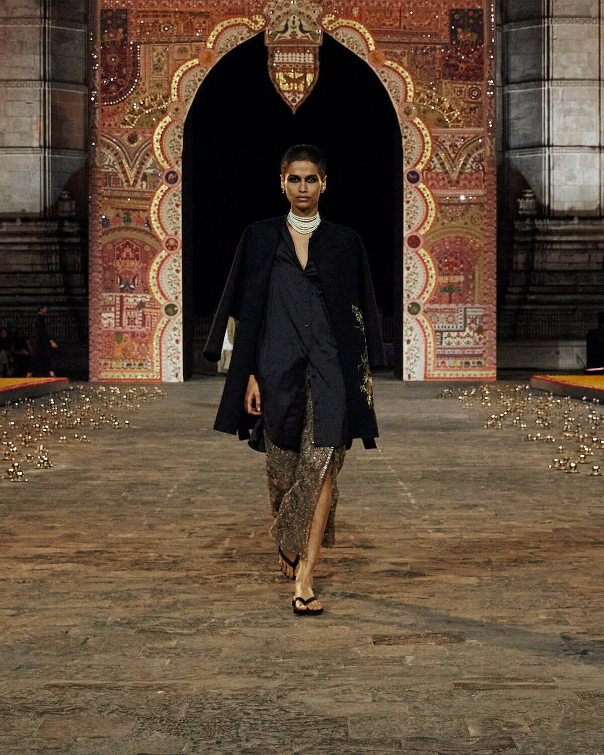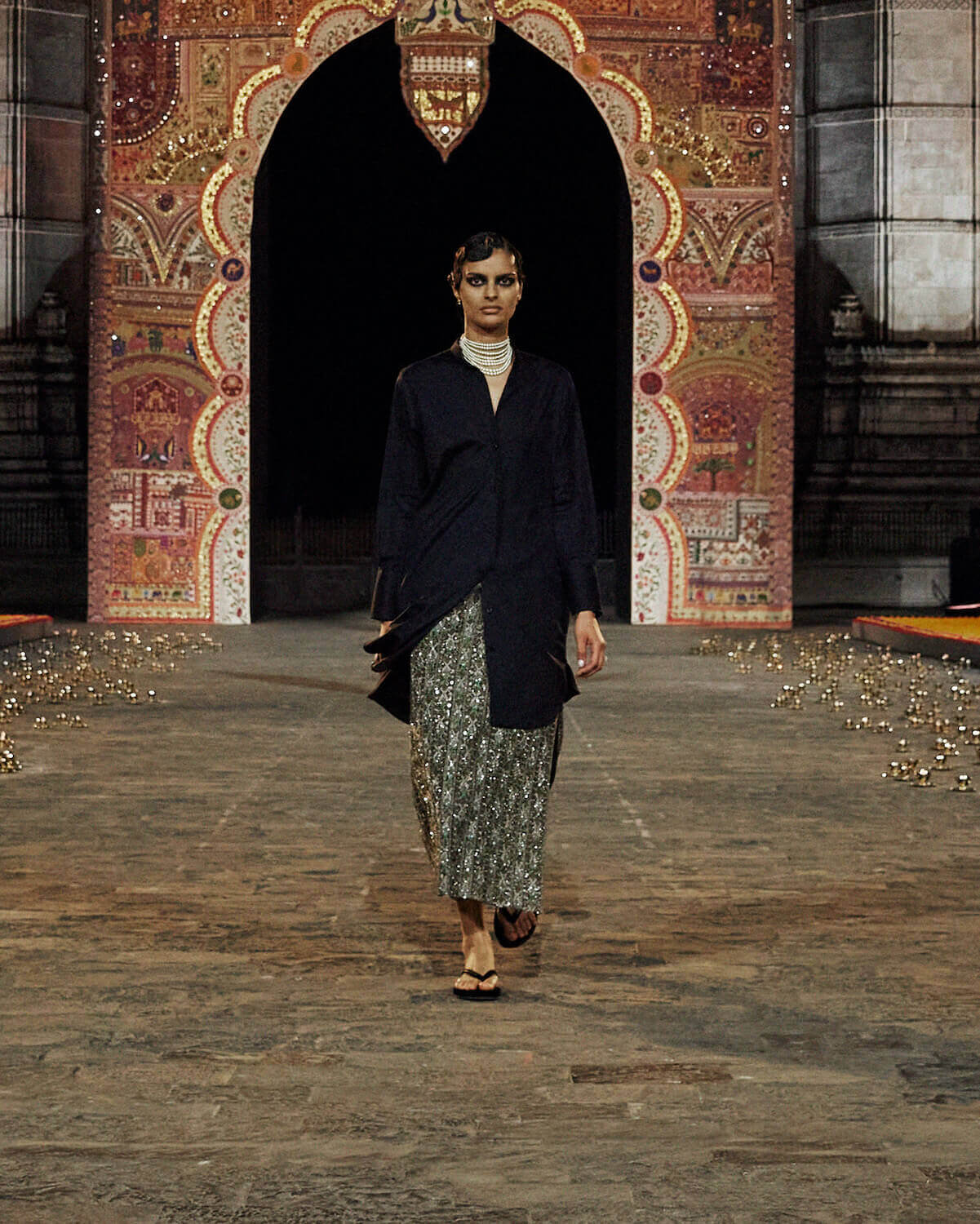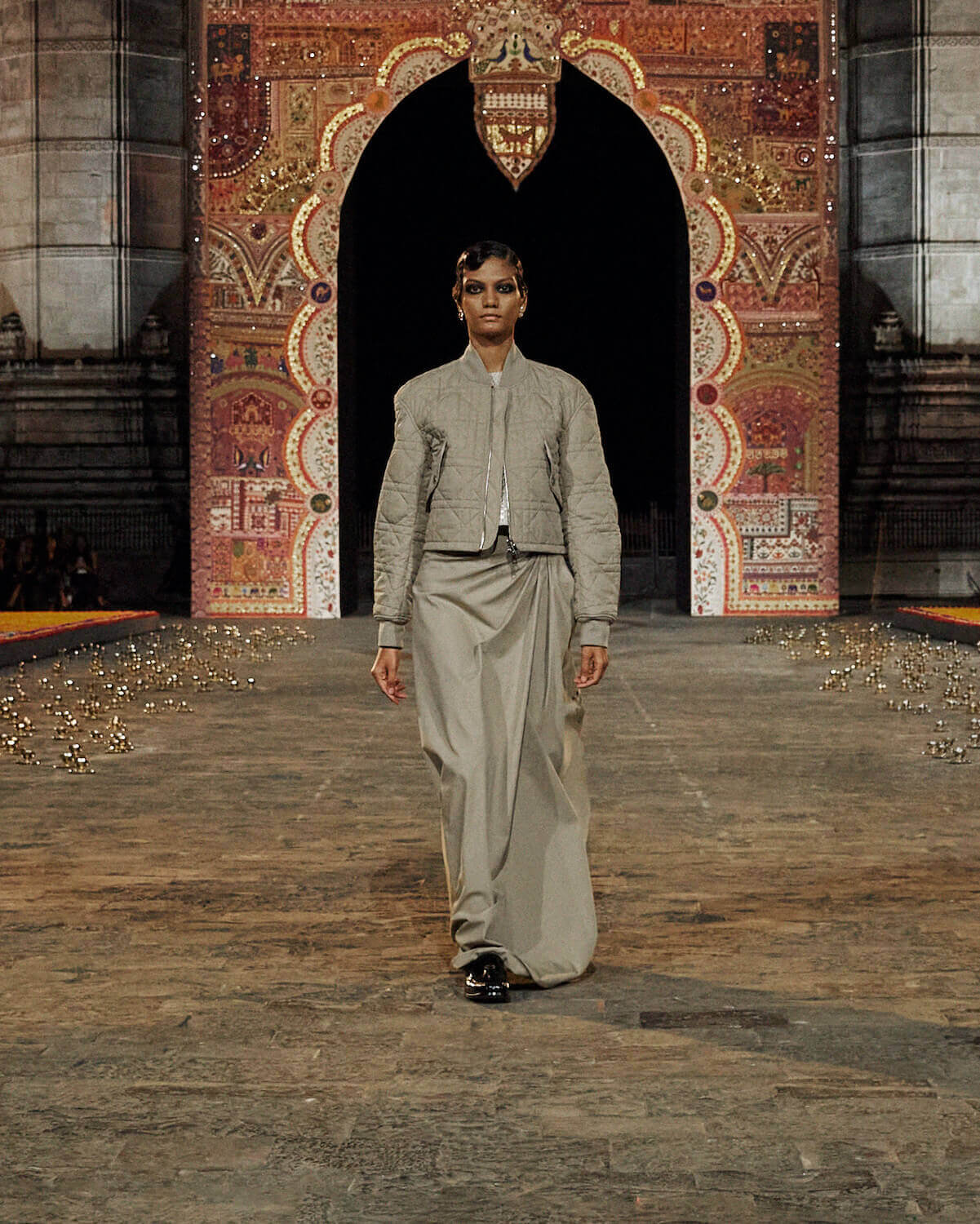 Maria Grazia Chiuri uses her travelling shows as an opportunity to collaborate deeply with local craftspeople. From North Africa, to Southern Italy or Southern Spain, her Dior is in dialogue with the places it visits, along with its people and unique crafts. A location like The Gateway to India is never simply a picturesque backdrop for fashion. It’s part of a richer story.