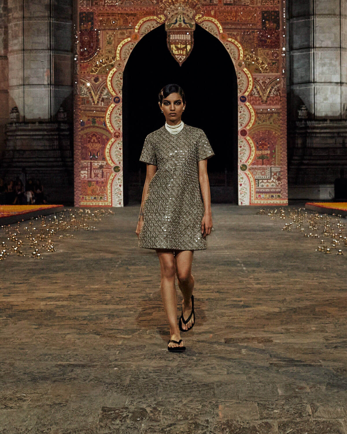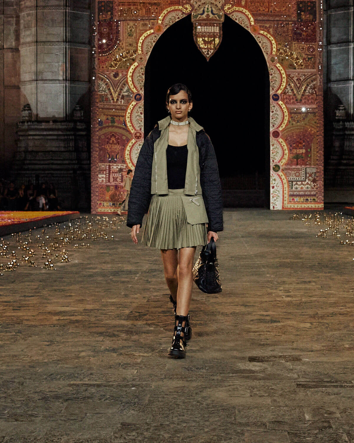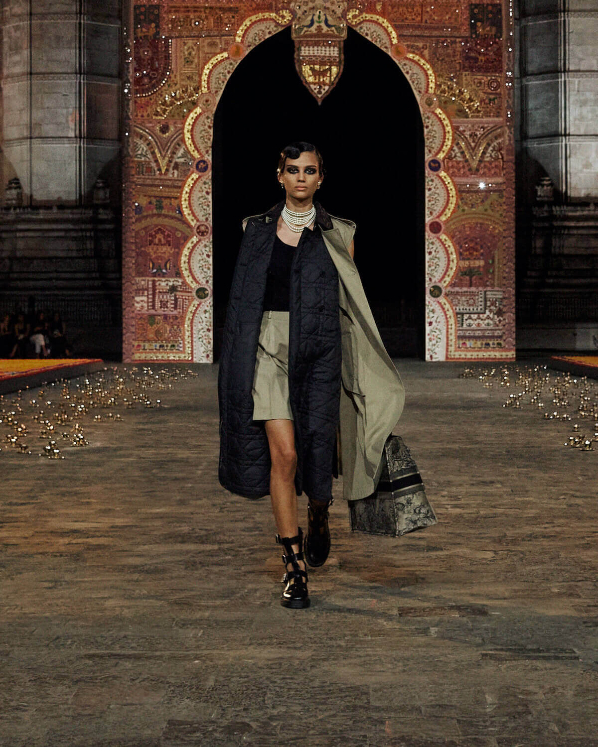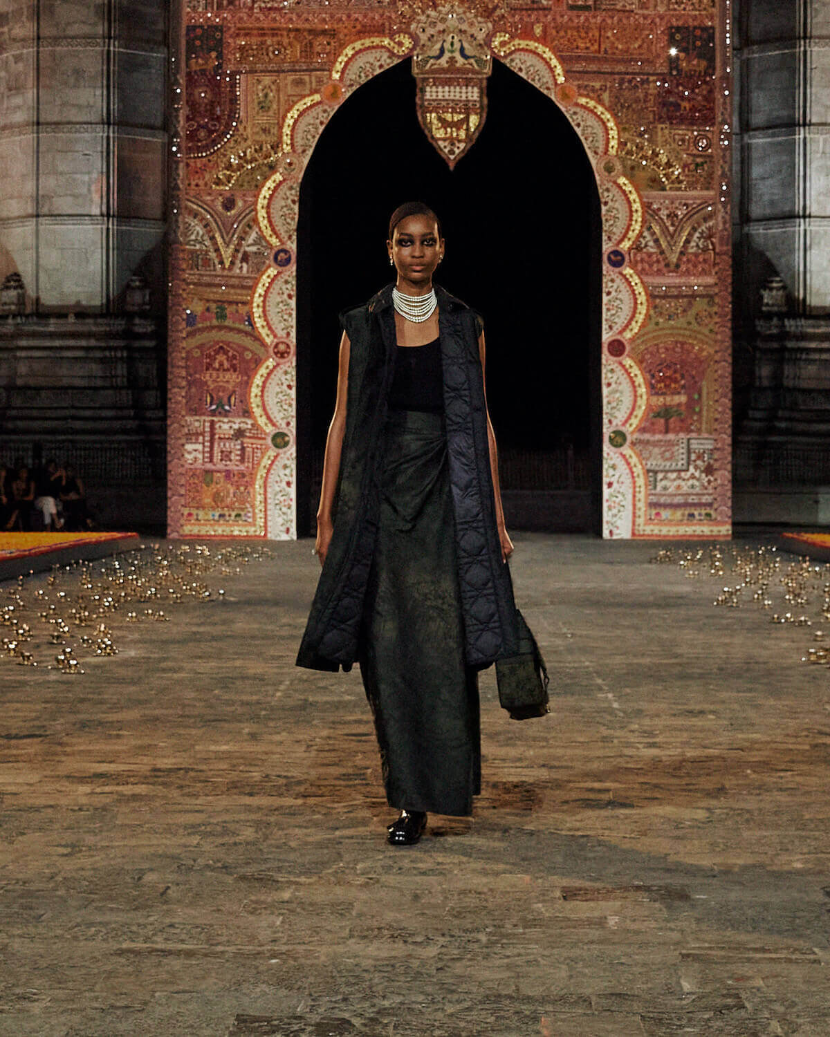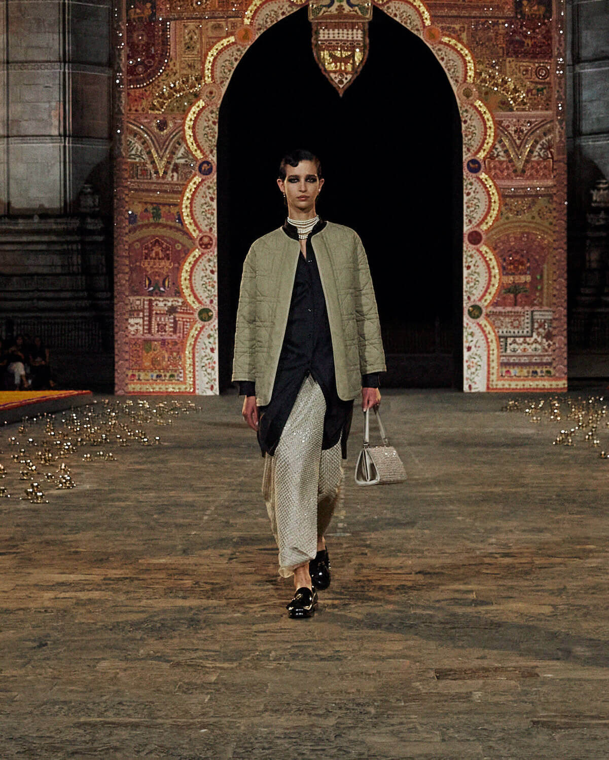 Maria Grazia Chiuri uses her travelling shows as an opportunity to collaborate deeply with local craftspeople. From North Africa, to Southern Italy or Southern Spain, her Dior is in dialogue with the places it visits, along with its people and unique crafts. A location like The Gateway to India is never simply a picturesque backdrop for fashion. It’s part of a richer story.