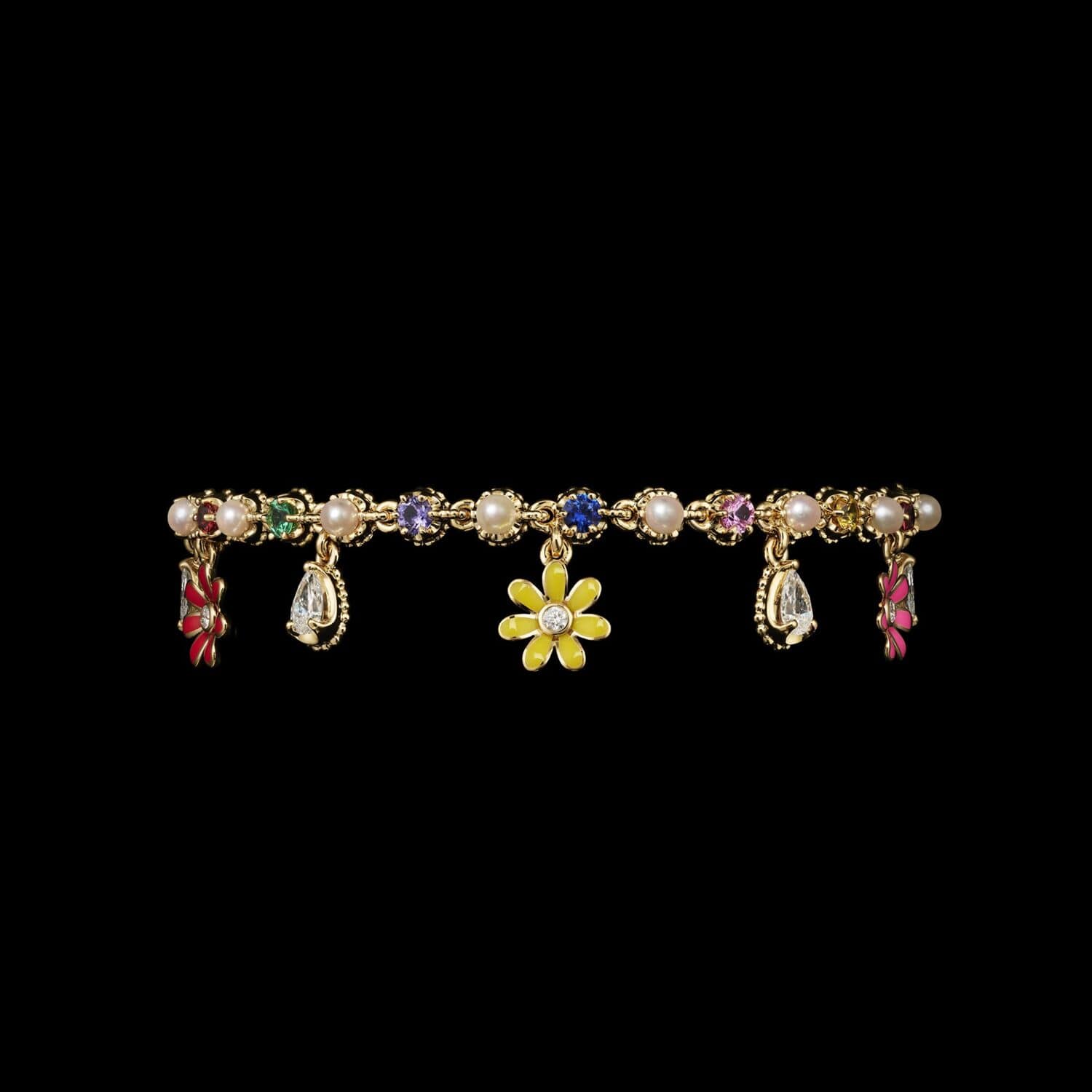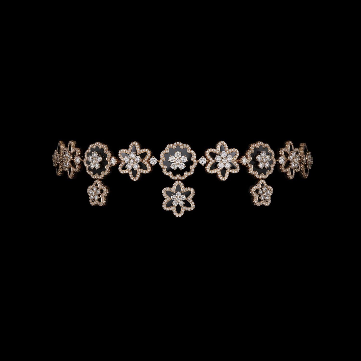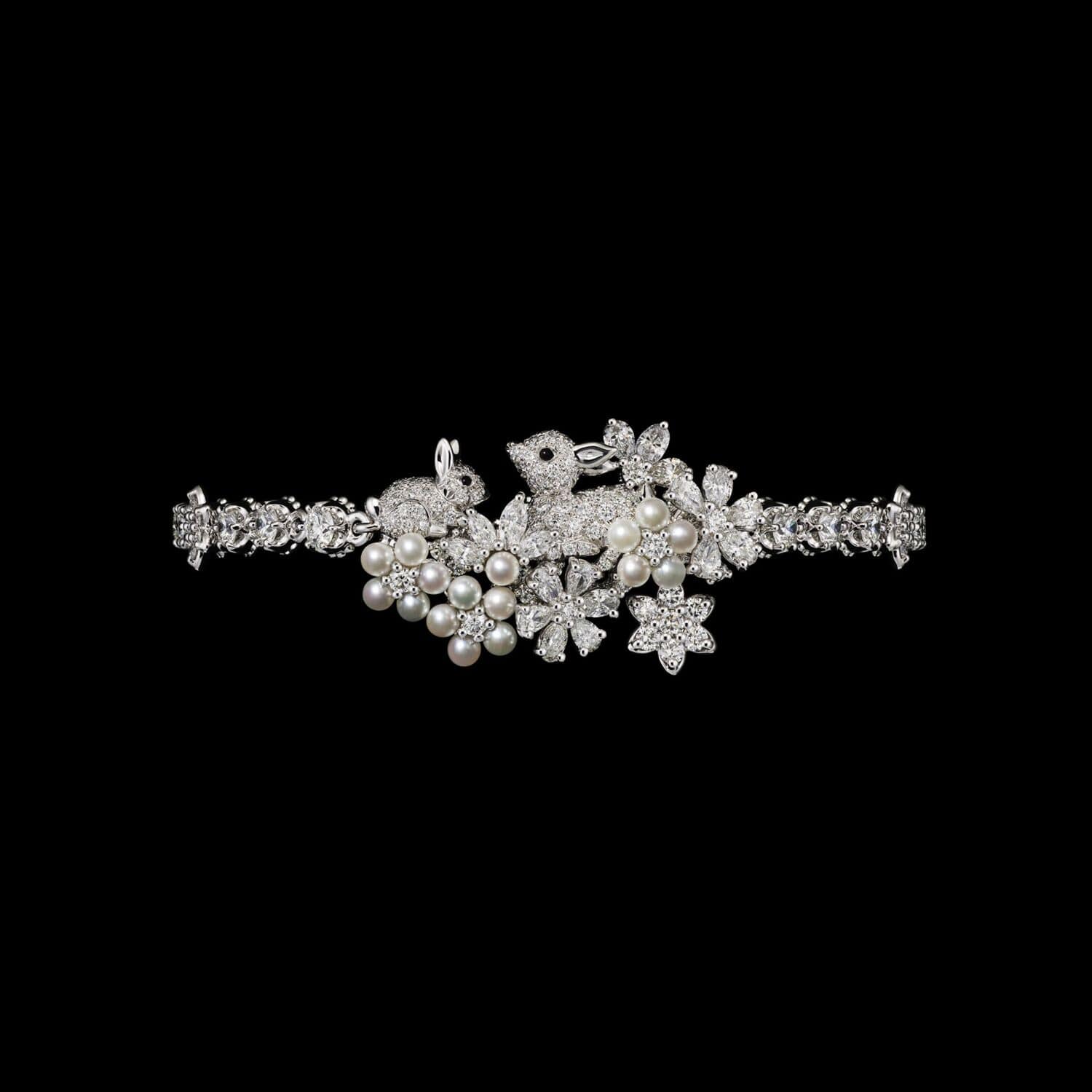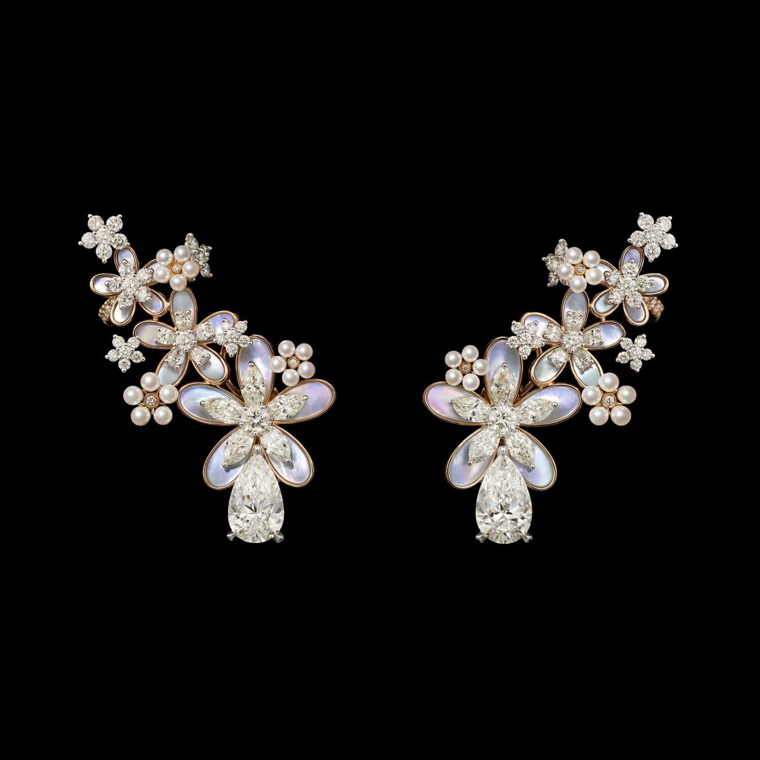 Central to the collection is the opale doublet technique, where opal is layered with onyx or mother-of-pearl to produce mesmerizing hues, reminiscent of sky and water. The result are pieces that transform natural elements into gorgeous displays of color. Further elevating the collection is the plique-à-jour, a hallmark of Dior Joaillerie. This intricate process, similar to crafting miniature stained glass, allows light to pass through a mosaic of lacquered colours, creating an effect that feels vibrant and magical. Given the craftsmanship and attention to detail, it’s no surprise then that the designs appear almost like two-dimensional paintings despite having very three-dimensional gems. But that’s deliberate — they’re little artworks with a sense of childlike whimsy as seen in the pink deer or the rainbow earrings. With everything from brooches to ear cuffs to a tiara, DiorExquis is every bit of the fantasy you’d want from a high jewelry collection.