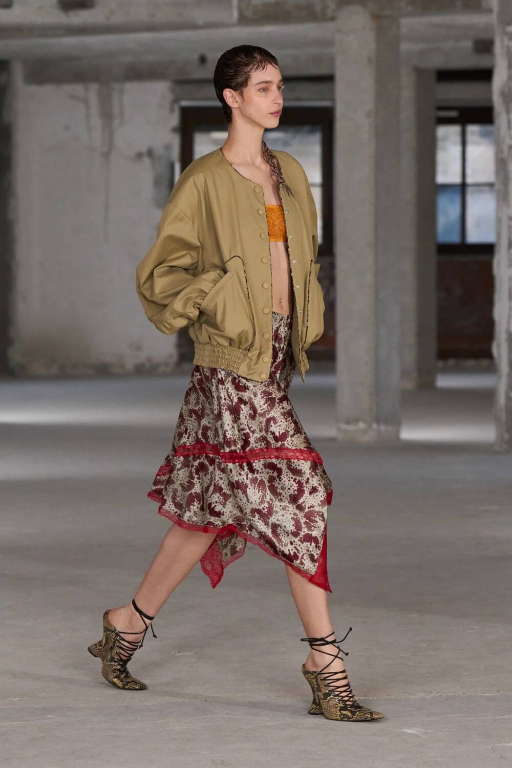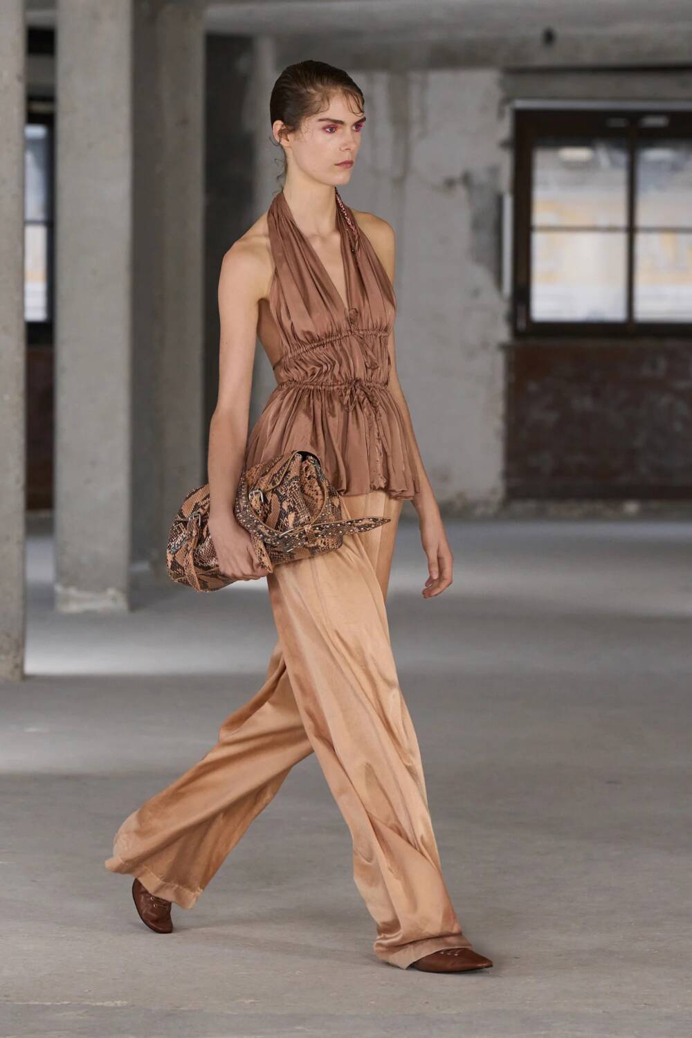 Fluid in the founder’s design language, the team worked to reinterpret his identifiable codes through an intoxicating array of prints – leopard, snake, fawn, floral and abstract. Coming in muddied, summer colours from blood red and violet to chartreuse and fuschia – there were slinky skirts and structured jackets. A fun step forward for the brand, lots of the looks were cinched in in strategically flattering places or draped in body-engulfing swaths of silk and lined with lace. Straight, cigarette trousers were worn with brocade blousons, eccentrically beaded hot pants or knee-length skirts with slouchy knit shirts, and tuxedo jackets were tucked into paper-bag trousers.