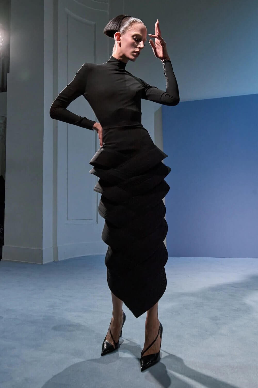 With his BFFs on the front row – Tilda Swinton, Timothée Chalamet, Daphne Guiness and Catherine Deneuve to name a few – Ackermann’s enrapturing silhouettes and poetic soundtrack (which included a song written for Mahsa Amini) was a welcome reminder not just of Gaultier’s eternal genetics but of Ackermann’s excellence and inimitable aesthetic. “It’s all about the pure lines. Everyone isn’t screaming for attention out there,” he said, referring to his runway. “I just wanted to do a small show, just a few guests, and honour this man who gave me this beautiful chance.”