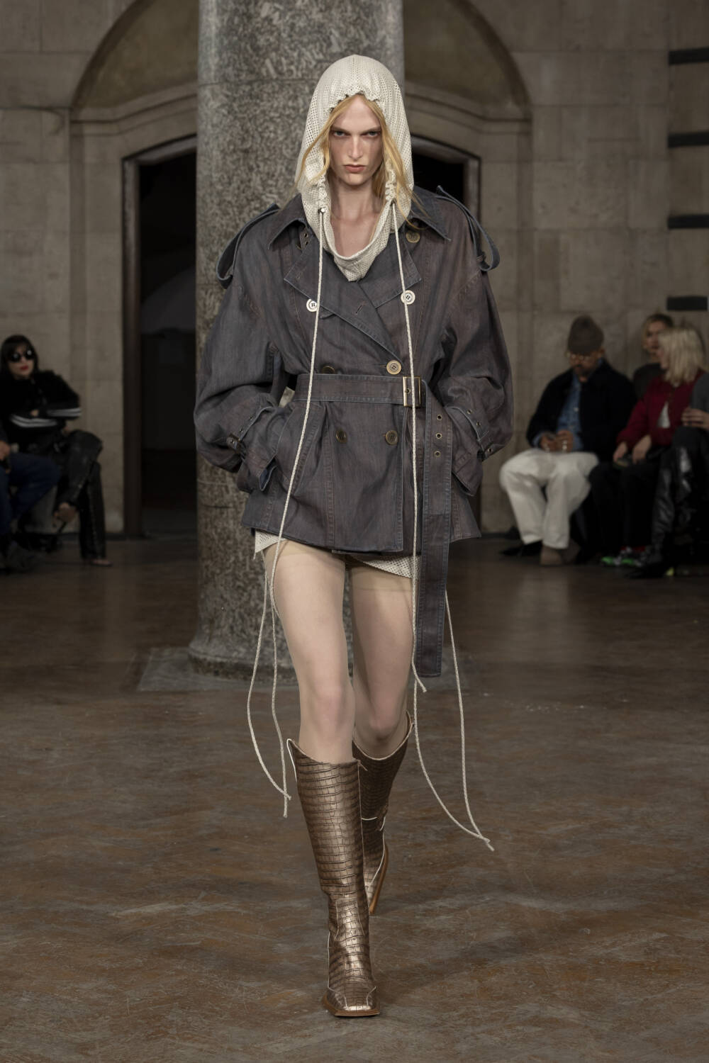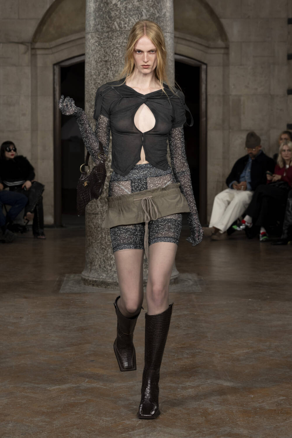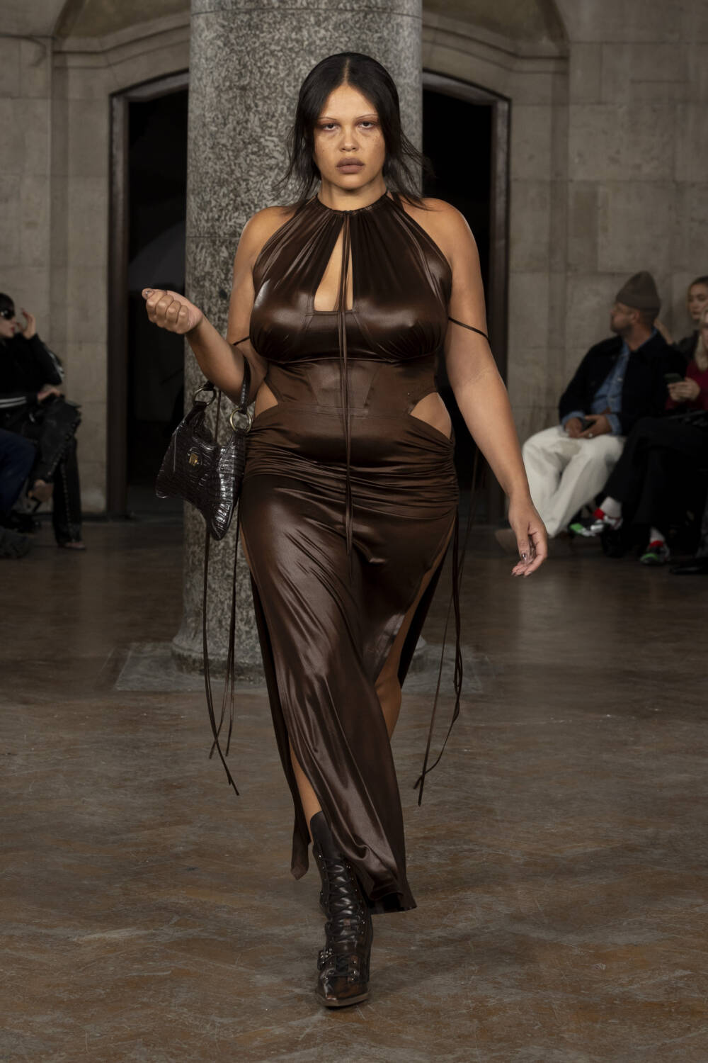 The Knwls woman demanded to be seen this season. As she entered the show space at the Old Central Saint Martins building in Holborn, she almost leered at onlookers – ‘Yeah, I look hot. What of it?’. She’s not wrong, to be fair.