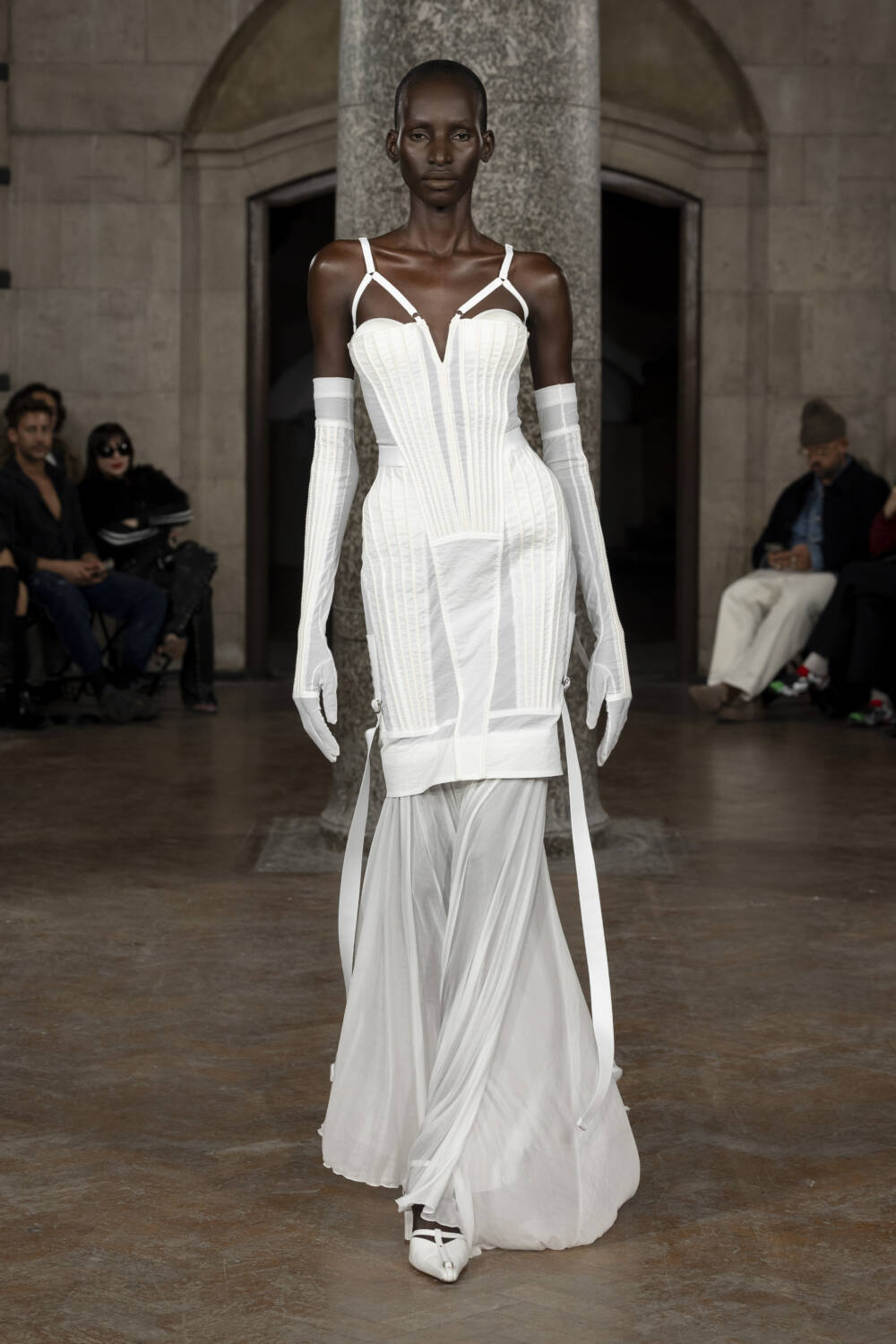 Closing the show – and making a dramatic entrance at the double doors to let everyone know – was the KNWLS bride. Neither mindful, nor demure, the wedded-to-be was clearly in a rush to consummate with sexy straps and sheer panelling that begged to be stripped off. Hot, hot, hot!