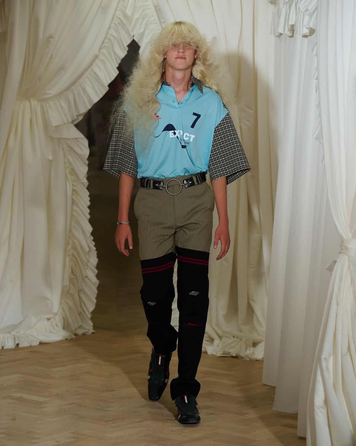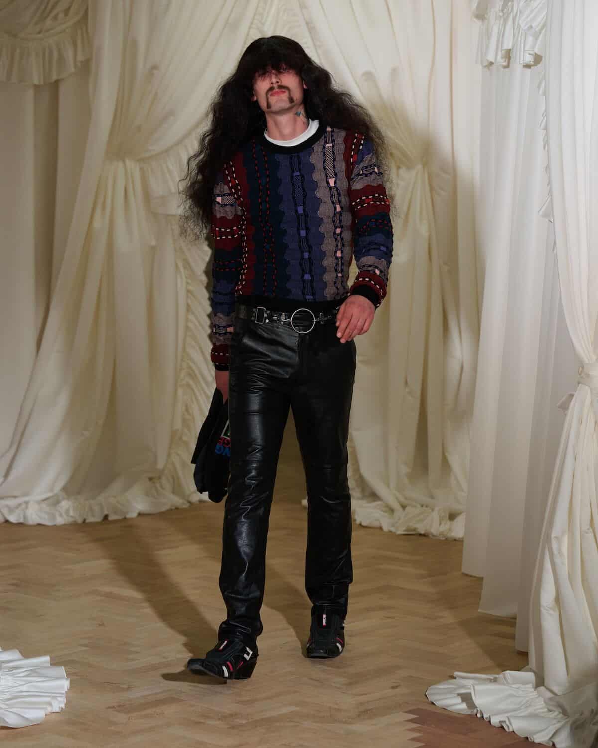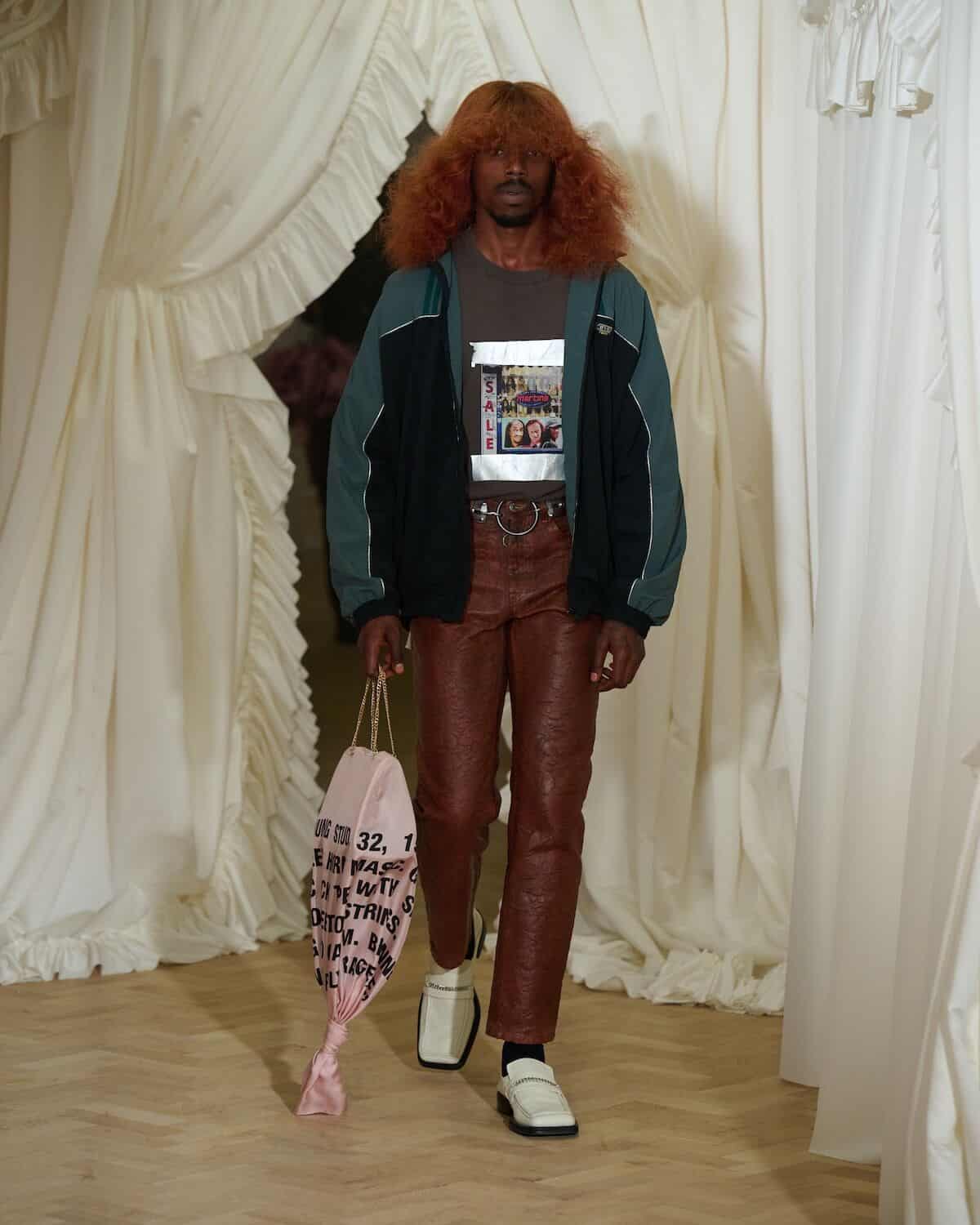 For her first London show in two years – Rose had decamped to Milan and Paris, showing a look book last season – her return to home soil landed the fash pack in a disused job centre in Marylebone. Inside she set up a market, inviting 22 independent makers, traders, designers and musicians to flog their merch. From queer publishers Smut Press and PARC London, S&M tee brand LadyCotton and the brilliantly bonkers designs of Pig Ignorant, Jonty K Mellmann and 4FSB, “it was an opportunity to celebrate all the creative people in London and everyone that contributes to the cultural life [of the city],” said Rose.