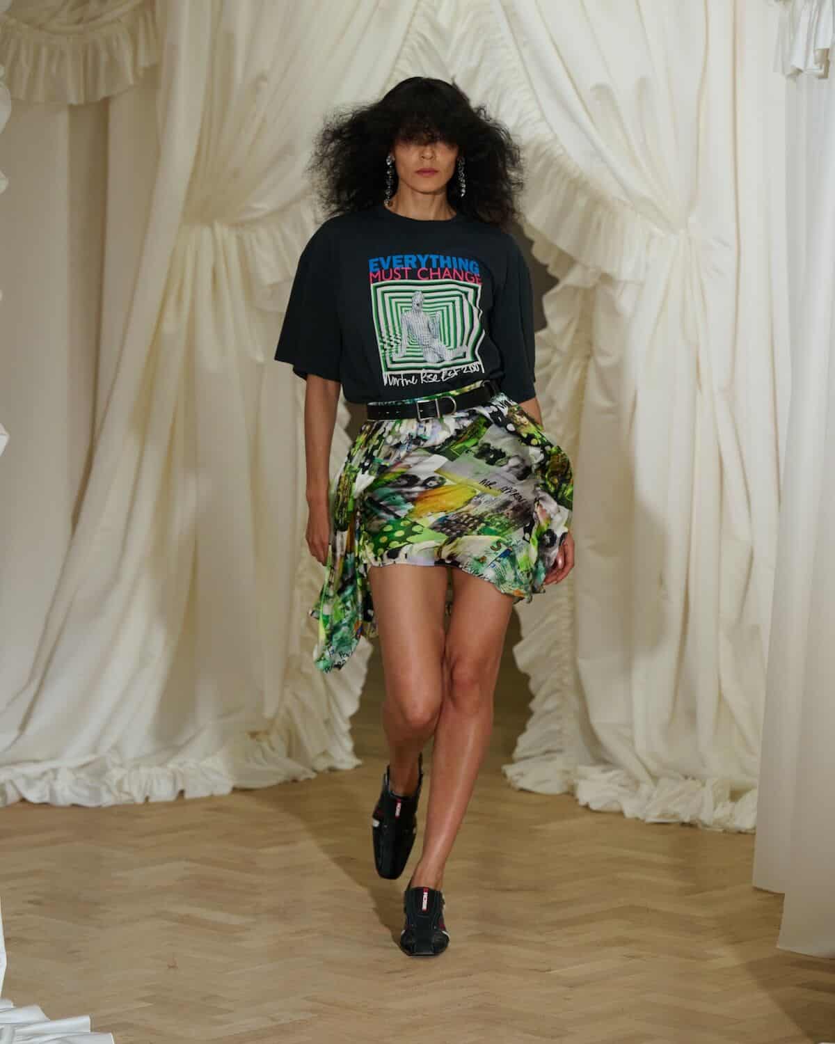 The designer’s street-casted troupe had shaggy manes and granny curls as they flaunted lady-like bags draped in Martine tees, all to the crowd’s delight who cheered and whistled throughout. The show was a vision of London in all its beautiful chaos and all the characters who light its spark. Never change Martine, never change London.