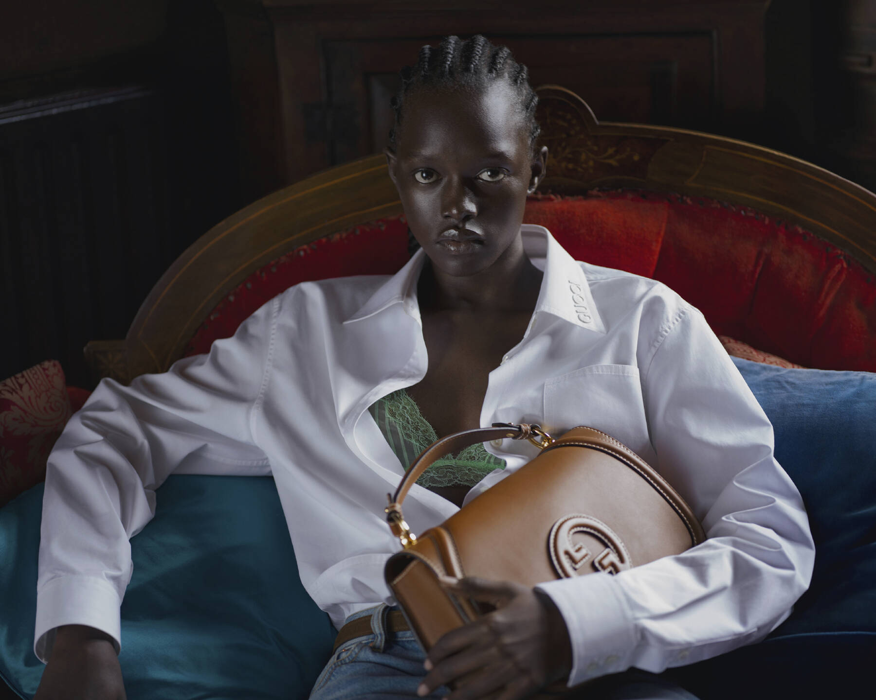 Debbie Harry kicked back in a black cab, decked in head-to-toe Gucci, canine companion at her side, looking like the picture of a woman about town. Yanan Wan applying Ancora lipstick in a French-embossed dressing room mirror. Alaato Jazyper lounging on a sumptuous velvet sofa. Lensed by the legendary, award-winning photographer and filmmaker Nan Goldin, the Gucci Blondie Bag campaign, entitled We Will Always Have London, unfolds as an ode to the timeless allure of the British capital.