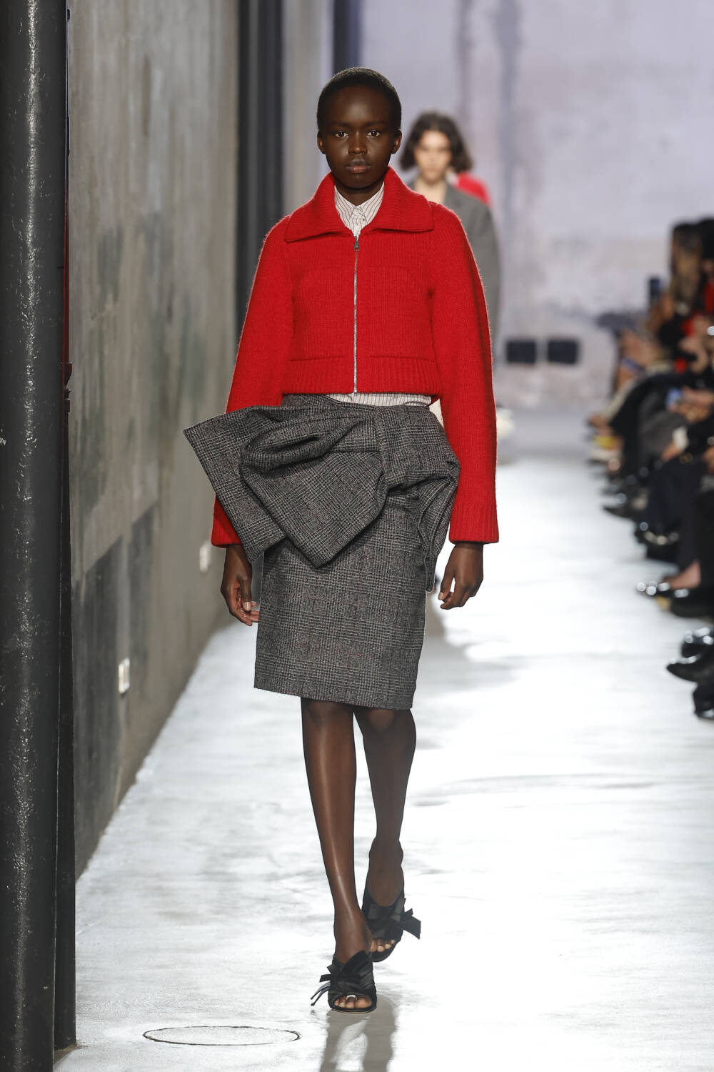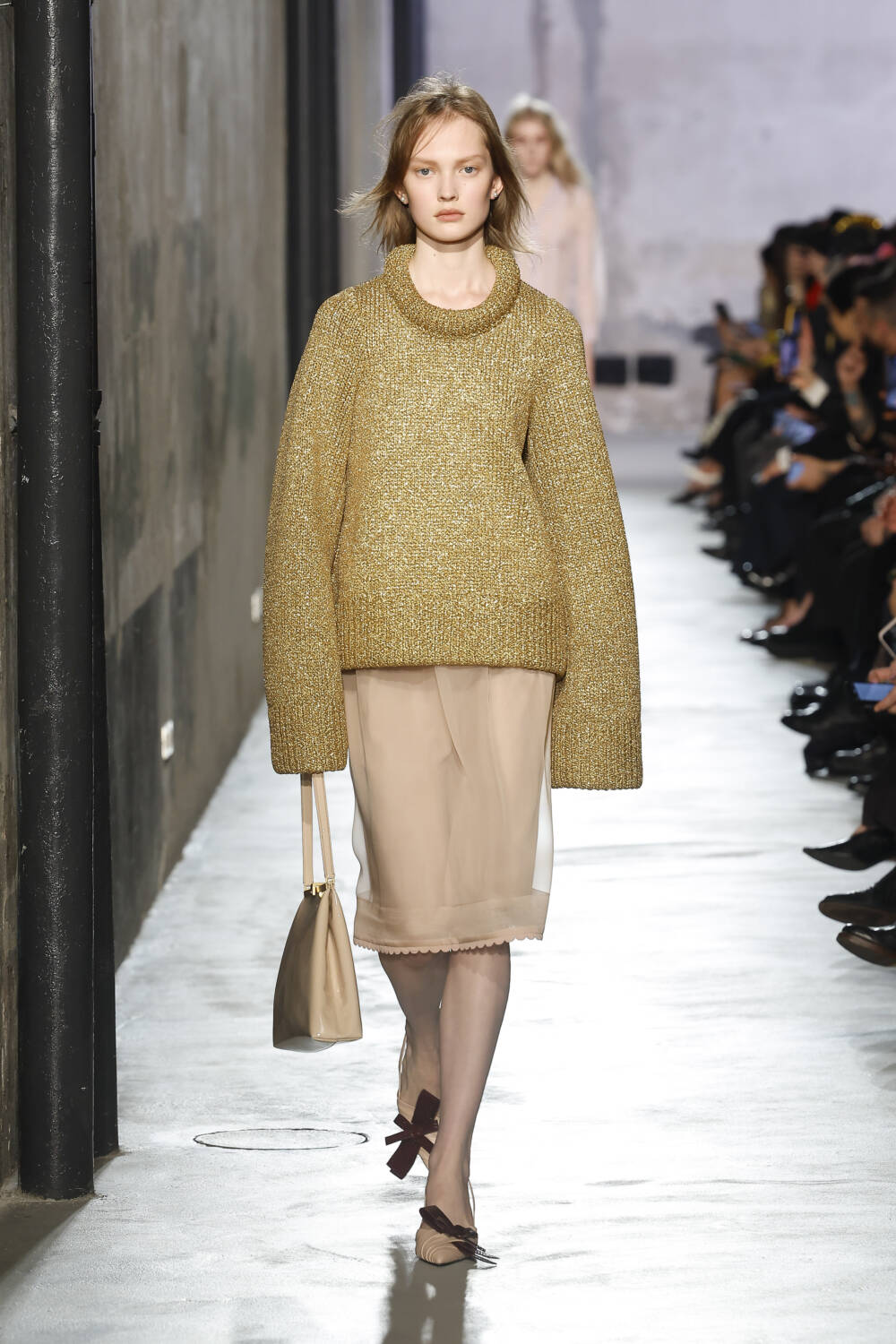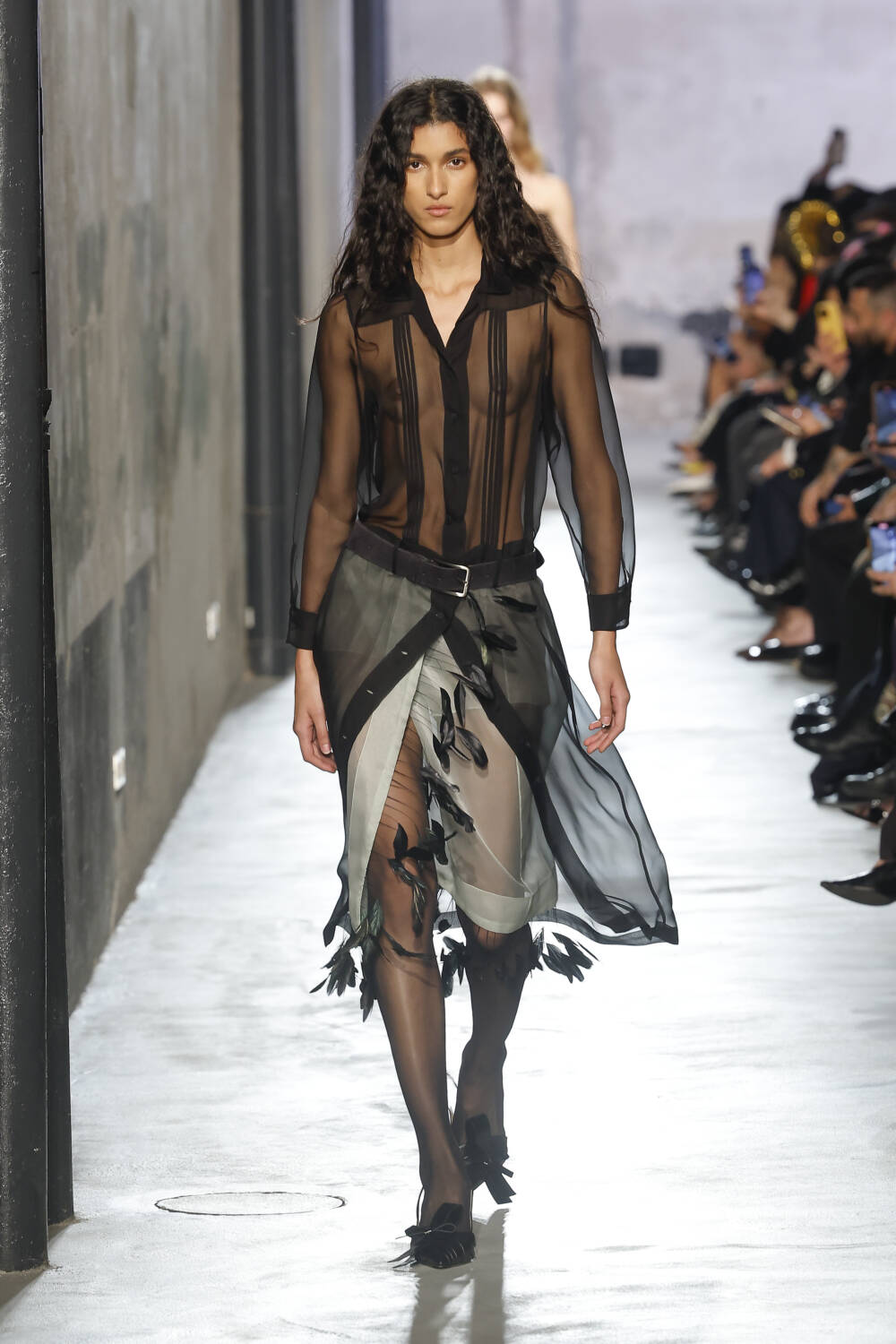 Alessandro Dell’Acqua didn’t just flirt with excess at No. 21’s Milan show – he tied it all up nicely with an oversized bow. Childlike whimsy tangled with grown-up polish, as innocence wove itself into sharp, knowing silhouettes. Dell’Acqua toyed with the very idea of dressing up, using the bow – a symbol of sweetness and decoration – as both a subtle detail and a bold statement.