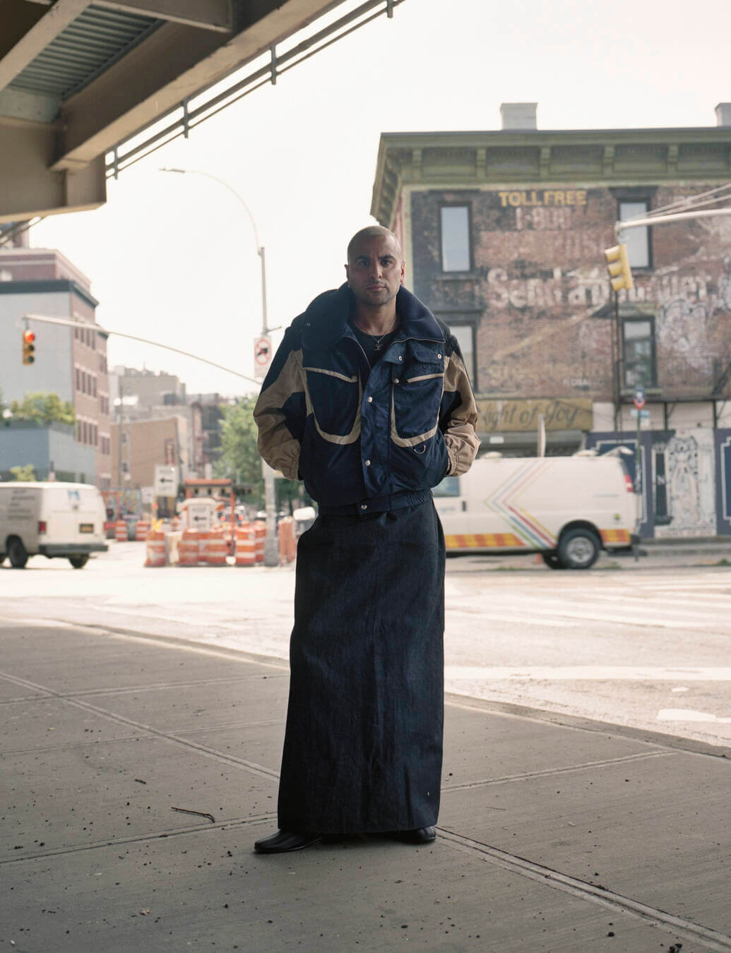 Luar is known well beyond the fashion sphere, perhaps because it’s a “true reflection” of Raul Lopez, a third- generation Dominican designer with Brooklyn attitude. He’s a queer person of colour who grew up on the south side of Williamsburg, which at the time hadn’t yet been gentrified to the point of parody it’s reached today. “It was gritty and shitty,” he says. Still living in the same Los Sures apartment building that he grew up in, Lopez has always stood out. Speaking to 10, he explains, “My upbringing in Williamsburg was pretty tough. Being raised in a very Latino machista household and being a flamboyant gay boy, people didn’t understand [me]. I was looking for a safe haven and tribes that would bring me in and accept me and I just started drifting into the streets to find friends and community. Blood isn’t always thicker than water. You can find chosen families that will be for you and ride for you.” Rather than obscure his differences, the designer leans into them, celebrates them and those of his peers, in turn constructing something radical: a luxury label by and for underrepresented, historically oppressed people.