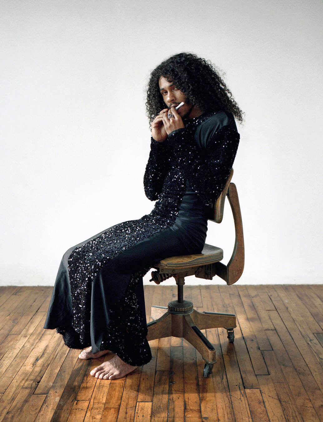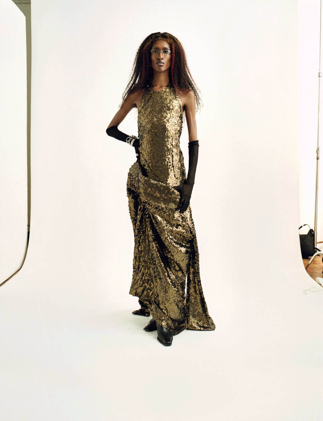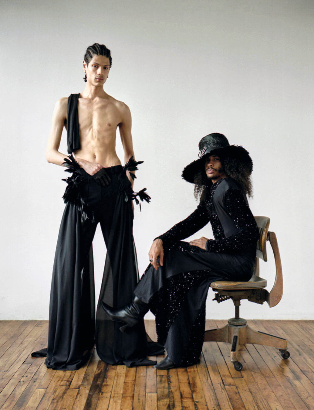 His primary goal is giving back tothose people who have built him upand inspired him, to trans housingorganisations and immigrants,and to the exceptional creativecommunities that have coalescedaround him. “Community is asimportant as my breath,” he says, “There is no bigger inspiration.” That community dynamic is marked by his “house dolls”, aka the Luar models, whom he thinks of as his family, his girls, his “daughtas”, many of whom he knows from NYC’s ballroom scene or Christopher Street – where the Stonewall riots, which transformed the gay liberation movement, took place – and who endearingly refer to him as their “gay father”.