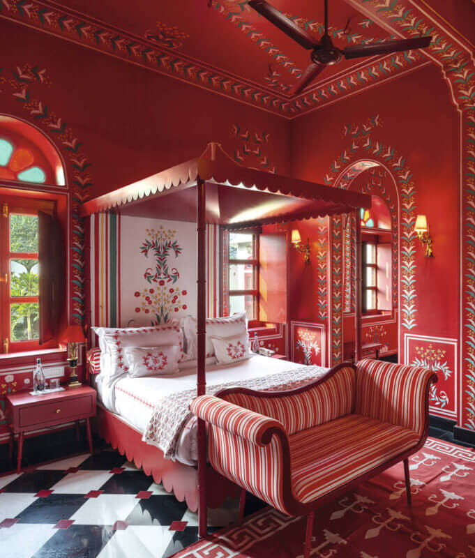 The nine-room Villa Palladio Jaipur, in India, is a dream of a hotel, with delightful interiors by the Dutch designer Marie- Anne Oudejans. Showcasing all shades of red and wallpaper adorned with palm trees and floral accents, it has featured in a plethora of magazines. Not only visually perfect, the bolt-hole has a palm-shaded swimming pool, a spa and a library – all essential factors for a peaceful getaway.