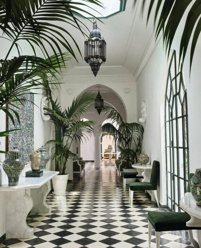 In Milan, a new favourite is Ferragamo’s Portrait Milano, a grand 73-room property housed in one of Europe’s oldest seminaries, located at the crossroads of the city’s swankiest shopping corridors. In February, the 27-year-old wunderkind designer Maximilian Davis showed his AW23 debut collection for the house in the grand piazza, now open to the public. Of course, there are plenty of stylish spots for recharging in the offseason as well. Head north from Milan and check in to the Passalaqua, a baroque confection sitting on seven groomed acres of olive groves, and mimosa and magnolia trees which cascade down to glistening Lake Como. This former private villa turned intimate hotel, opened by the Valentina De Santis (of the famed hotelier dynasty) in the summer of 2023, is a love letter to Italian craftsmanship from the giant Murano glass chandeliers to the candy-coloured Fiat 500 buggy that transports guests around the property. This summer, British designer Jasper Conran will open the doors to Villa Mabrouka located in another idyllic setting – the hills above Tangier – which will offer spectacular views of the strait of Gibraltar. Once the home of Yves Saint Laurent and Pierre Bergé, this exotic retreat will soon be the place among the jet set.