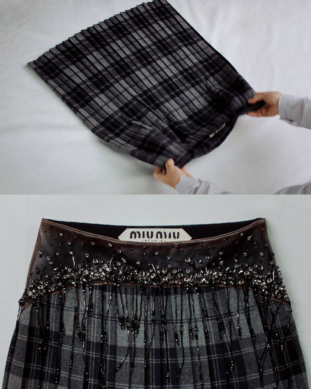What’s better than a one-of-a-kind, wholly sustainable and festive Miu Miu garmet? This Christmas season, Miu Miu unveils the fifth edition of its annual Upcycled collection, offering revamped leather, kilts and yarns from previous runways in a bedazzled Christmas capsule. Sourced from the ’50s and ’70s, kilts are served with trompe l’oeil effects and sit on the hip, pairing themselves with upcycled leather biker jackets from the brand’s fall 2022 collection and embroidered motifs inspired by its spring 2011 show. In an effort to champion circular design, the Italian label celebrates the festivities by joining forces with the non-profit collective Aura Blockchain Consortium which promotes transparency in the luxury industry. Sported by Miu Miu muse Emma Corrin in the accompanying campaign shot by Lengua, the collection is available now in selected Miu Miu stores as well as online. Shop here.