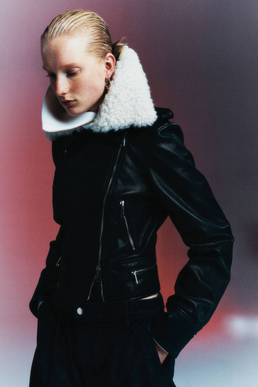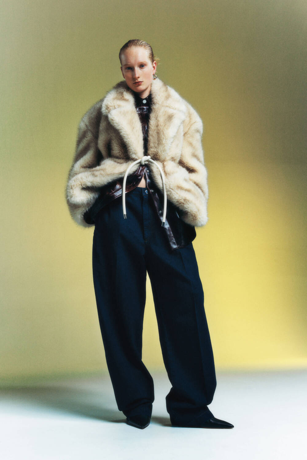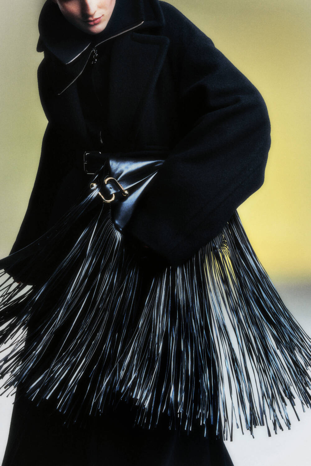 That said, no fabulous-looking gateau is possible without the quieter eggs, flour and butter that give it its rich, chocolatey backbone, allowing it to bring the delight it does. For Sportmax, these more understated components take their form as perfectly tailored slacks and jeans that assume baggier frames. The trousers that are on the skinnier side feature added layers of fabric for that extra dimension. Buttons, poppers and hardware are sprinkled onto the edges and hems to add an extra edge, whilst a swishing leather fringe appears on tunics and bags for a dash of play. A boxy faux-fur coat with a rope tie is a particular stand out, along with a shearling-lined biker jacket bedecked with zips. The colour palette is, again, understated but effective. Black, deep navy and slick wine shades coat supple fabrics whilst a series of pointed-toe boots and shoes check that last tickbox for how to build the perfect wardrobe for that effortlessly elegant contemporary woman.