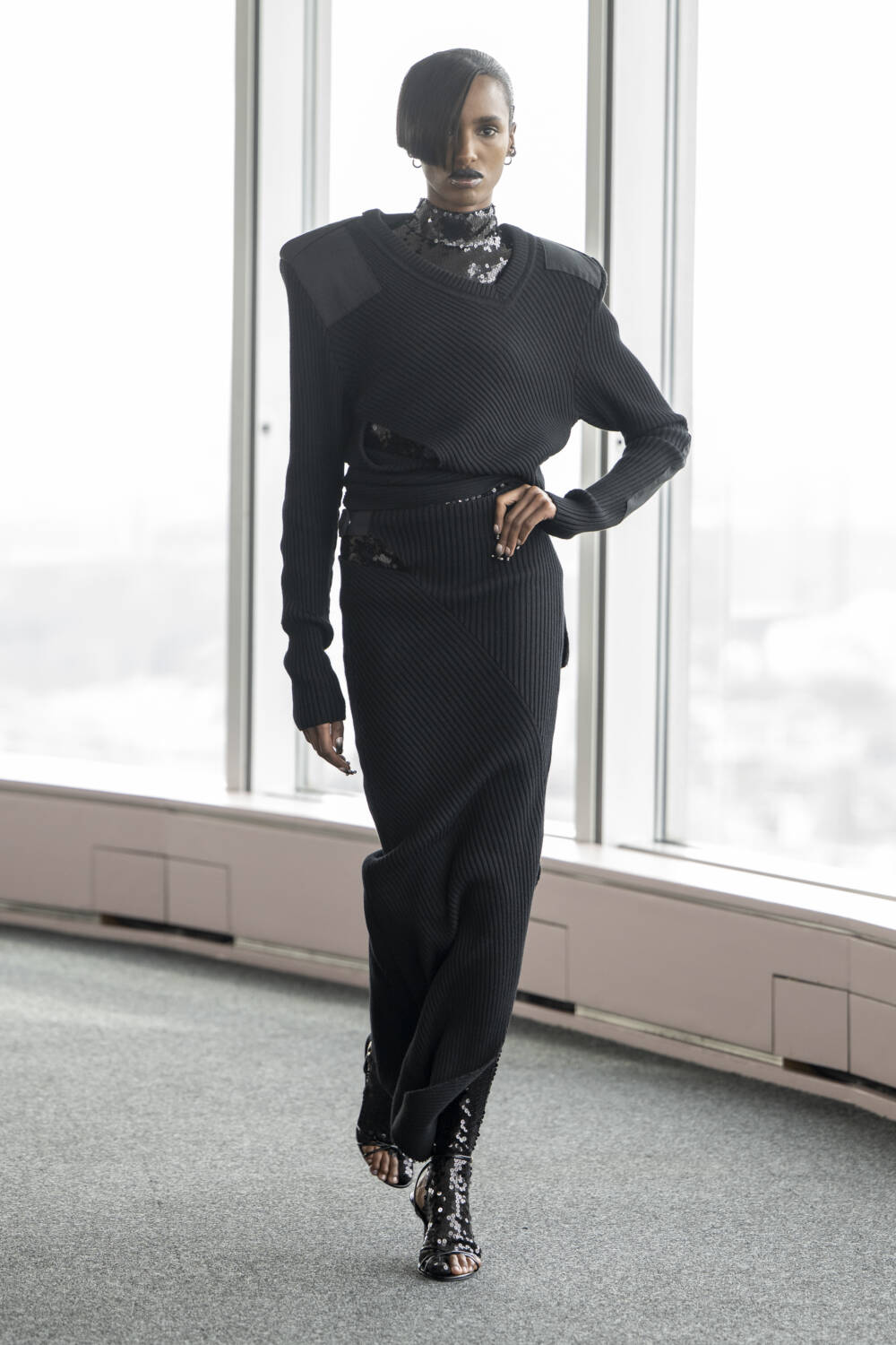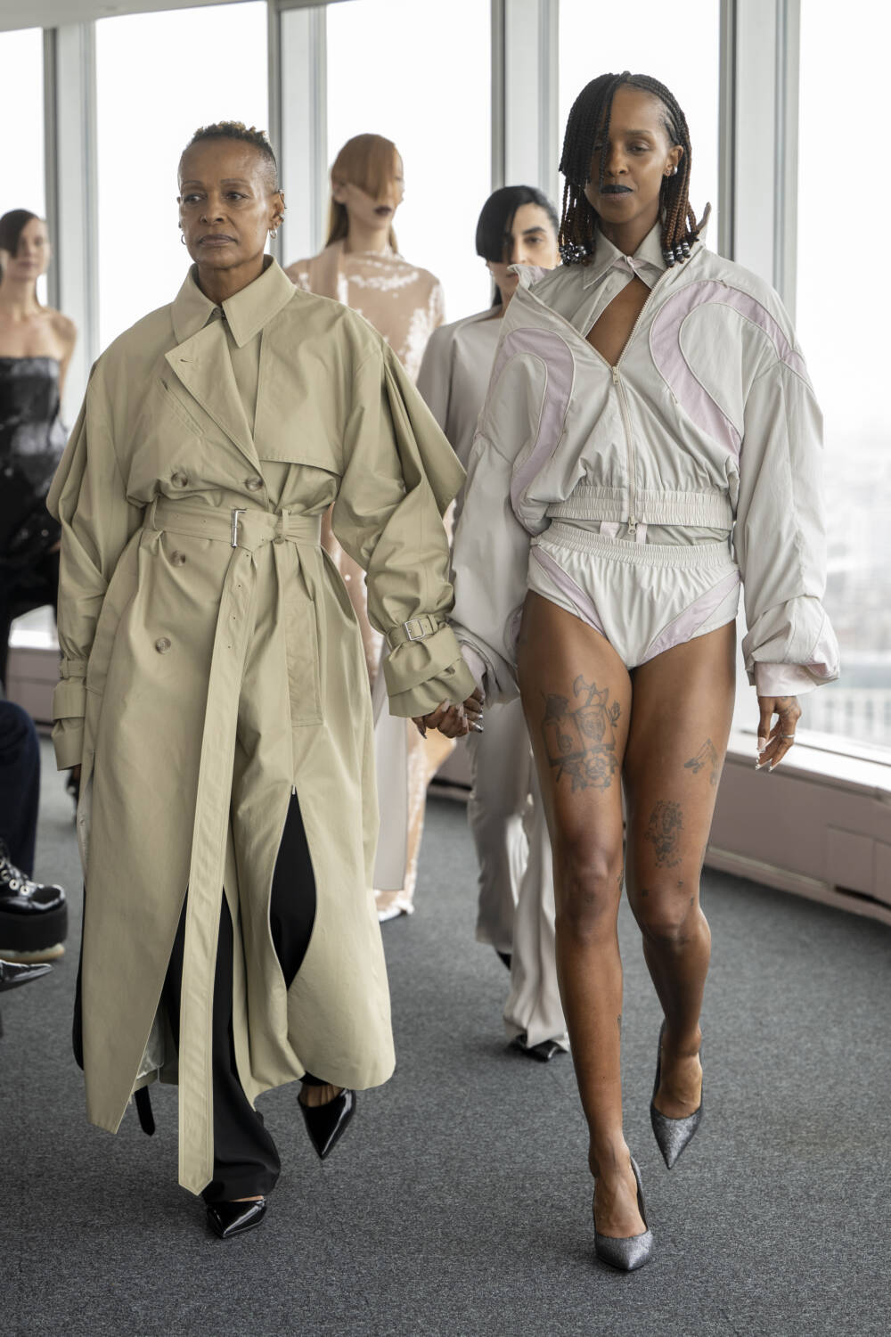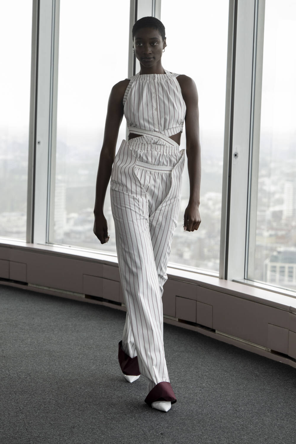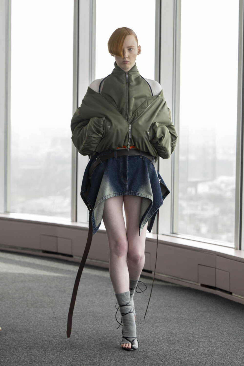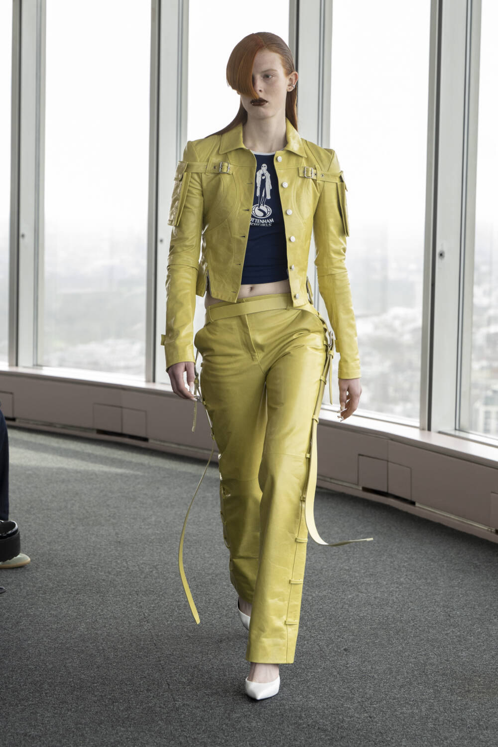 Themed on the idea of clothes as armour, pieces were functional but subversive, encouraging challenge rather than blind acceptance. The cuts felt defiant, with the term “power suit” feeling very apt for the sharply sculpted blazers and trousers that peppered the womenswear. Shirts were constructed from upcycled boxers giving it a masculine edge too. Military knits were cut up and restructured, nodding to adaptability, whilst unexpected graphics like a reimagined Tottenham Hotspur insignia, which instead opted for the phrase “Tottenham Hotgirls”, embraced the idea of community and sisterhood. It was an expressive, powerful and a considered exploration of the power of clothes.
