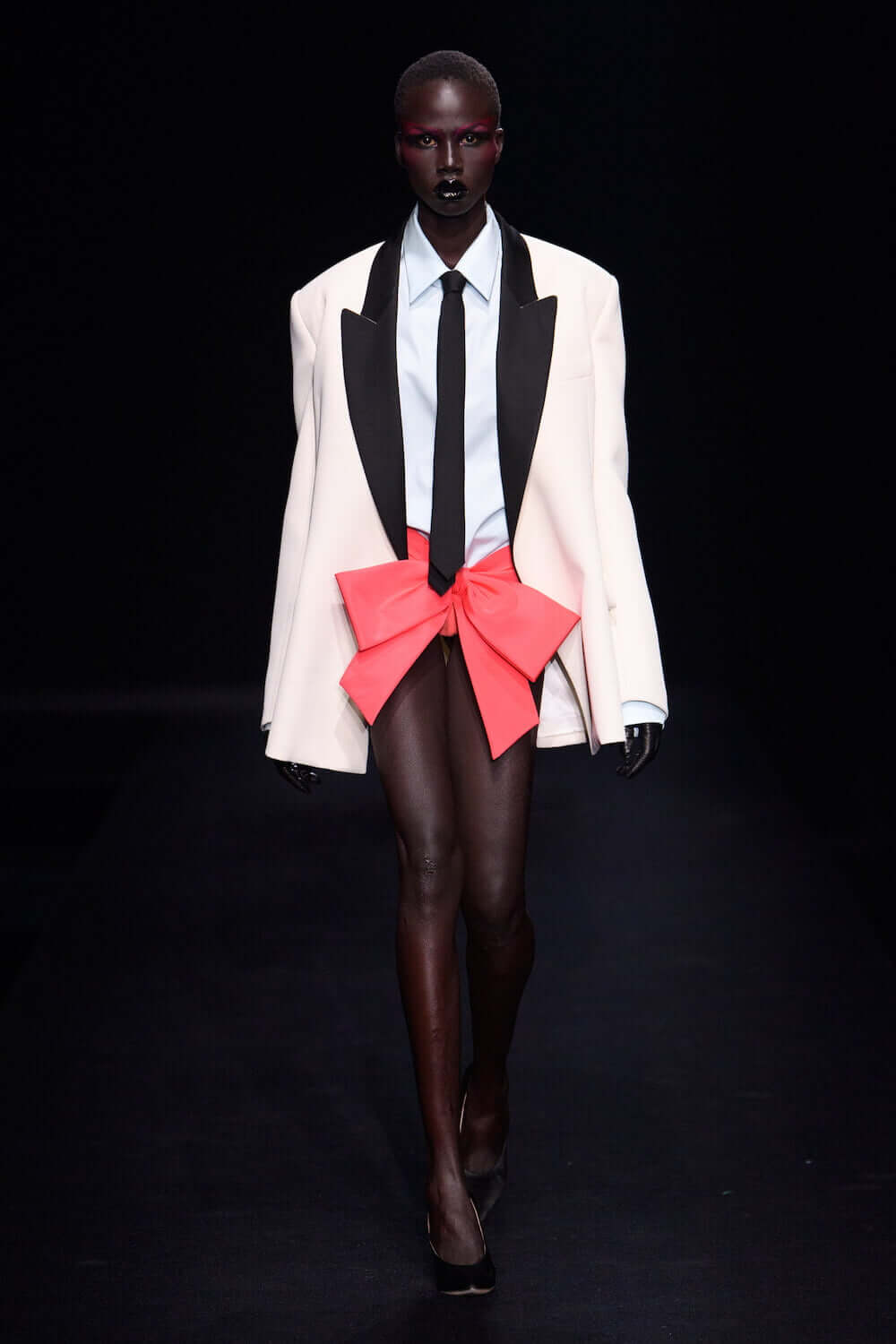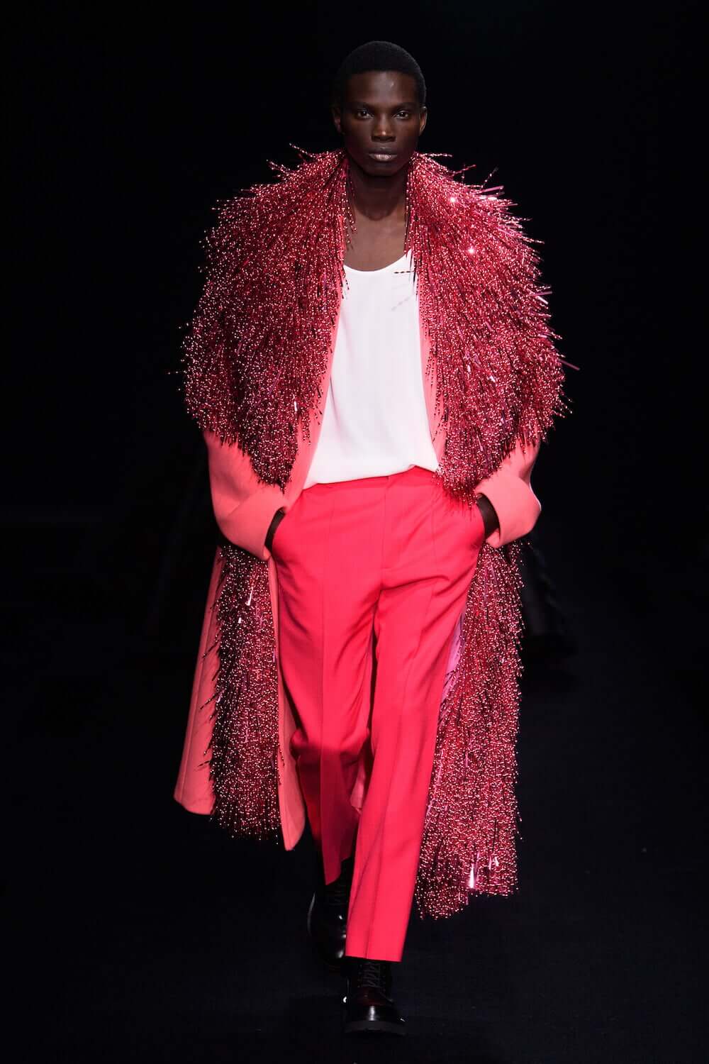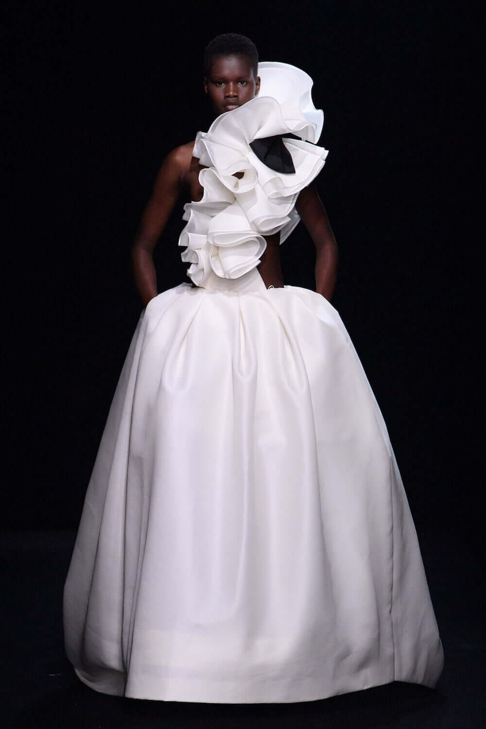 “It’s the idea of the club as a place where fantasies can become real; where people are not only allowed to be who they want to be, but where their fantasies can transform them into whomever they wish to be. I think this is quite contemporary,” Pierpaolo Piccioli said of his Valentino haute couture show. Staged in the Bridge Club under the Pont Alexandre III, intense silhouettes of colours and textures emerged from the dark in a fusion of couture, clubbing culture and performance art founded in memories of the New Wave and New Romantics scenes of the 1980s. “The world of Leigh Bowery, the world of Mr Valentino in the ‘80s. The glamour of the stripes, the polka dots, the ruffles, the most classical signs of haute couture, but re-signified in a different way with a different kind of balance. Leigh Bowery meets Mr Valentino,” as the designer put it. By evoking the spirit of the original club kids, Piccioli wanted to paint a picture of a new contemporary world of individuality where the club needn’t be your only sanctuary for self-expression, but where the street is your stage. “I’m delivering a certain invitation to be yourself: facing the reality of people who just want to be themselves, whoever they are. Transforming them into their best version… I think that’s what fashion is for.”