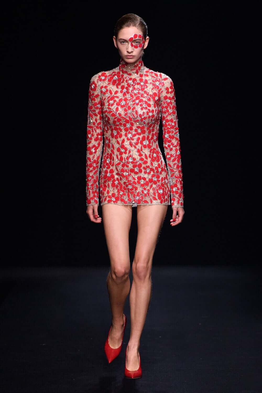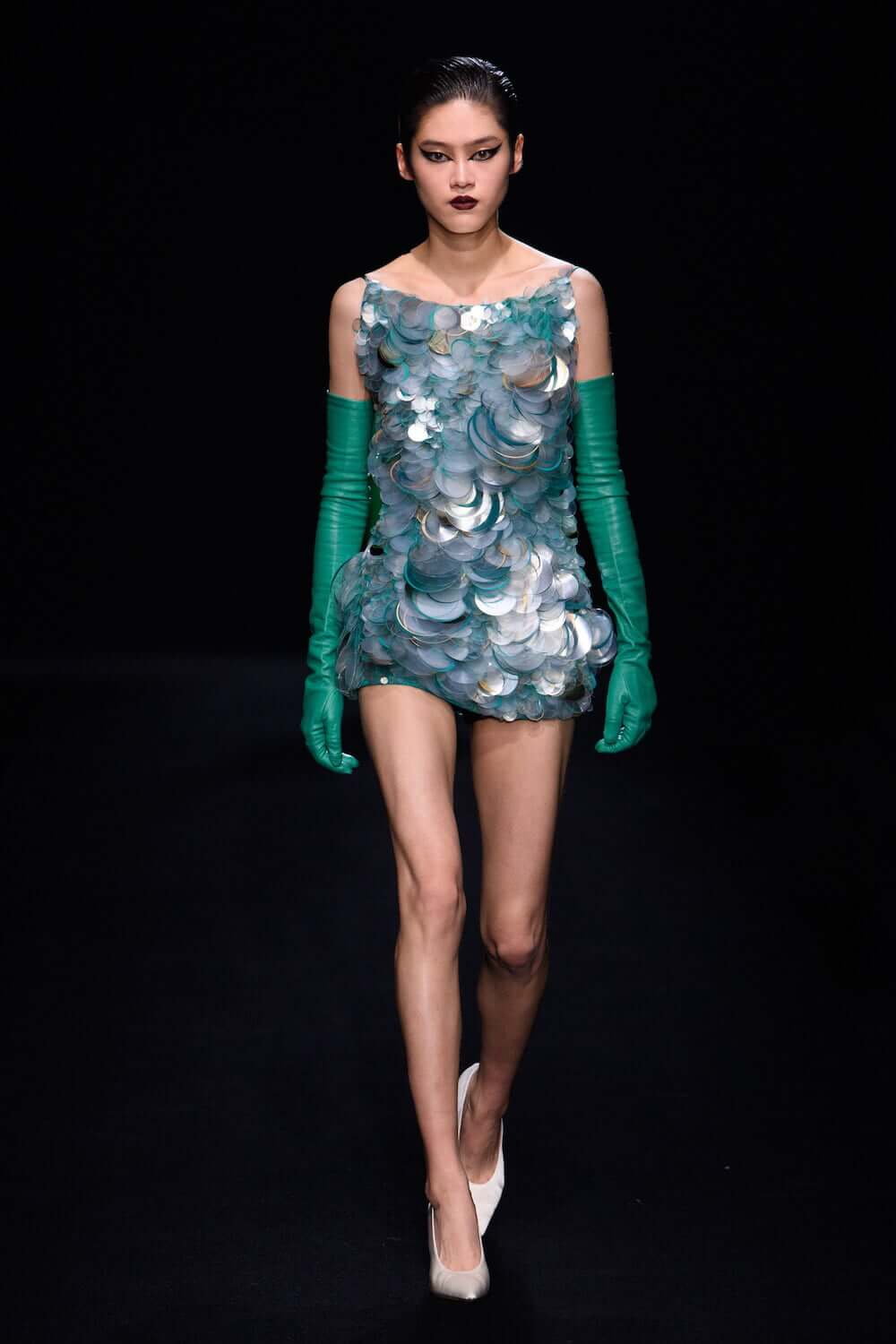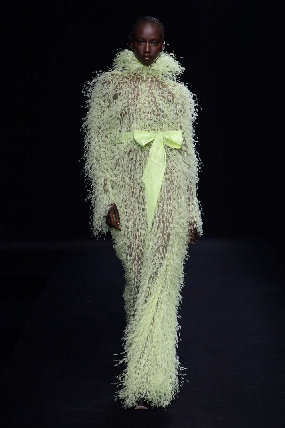 “It’s the idea of the club as a place where fantasies can become real; where people are not only allowed to be who they want to be, but where their fantasies can transform them into whomever they wish to be. I think this is quite contemporary,” Pierpaolo Piccioli said of his Valentino haute couture show. Staged in the Bridge Club under the Pont Alexandre III, intense silhouettes of colours and textures emerged from the dark in a fusion of couture, clubbing culture and performance art founded in memories of the New Wave and New Romantics scenes of the 1980s. “The world of Leigh Bowery, the world of Mr Valentino in the ‘80s. The glamour of the stripes, the polka dots, the ruffles, the most classical signs of haute couture, but re-signified in a different way with a different kind of balance. Leigh Bowery meets Mr Valentino,” as the designer put it. By evoking the spirit of the original club kids, Piccioli wanted to paint a picture of a new contemporary world of individuality where the club needn’t be your only sanctuary for self-expression, but where the street is your stage. “I’m delivering a certain invitation to be yourself: facing the reality of people who just want to be themselves, whoever they are. Transforming them into their best version… I think that’s what fashion is for.”